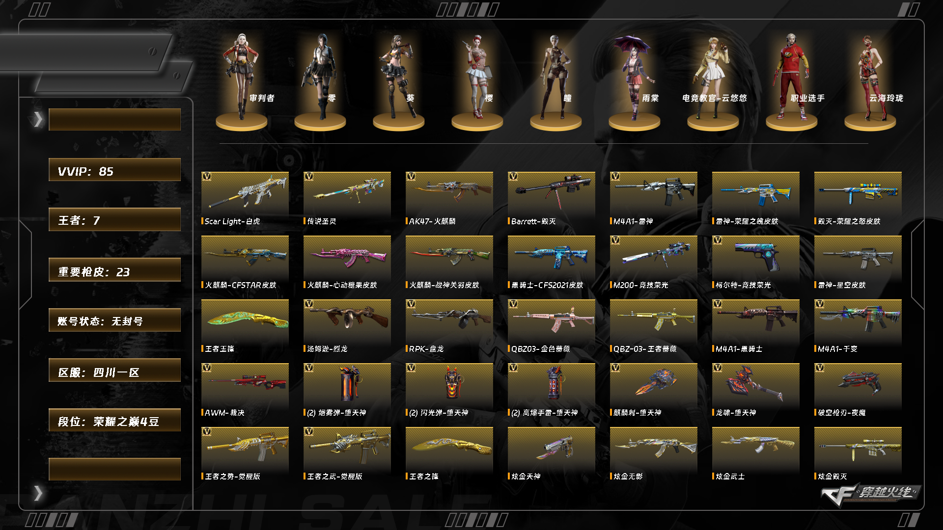 abc9430/西部/四川一区/钱包注销/可排位/可二次/掌火id;350698467/88v/m200竞技荣光/传说圣灵/星神长生圣莲/星神炽天使x/q金色蔷薇/白虎/破空呛刃夜魔/柯尔特竞技荣光/雷神精英刀锋/【四防已开】/电竞教官云悠悠/雨棠/角色/葵/零/审判者/瞳/樱/云海玲珑/黑骑士