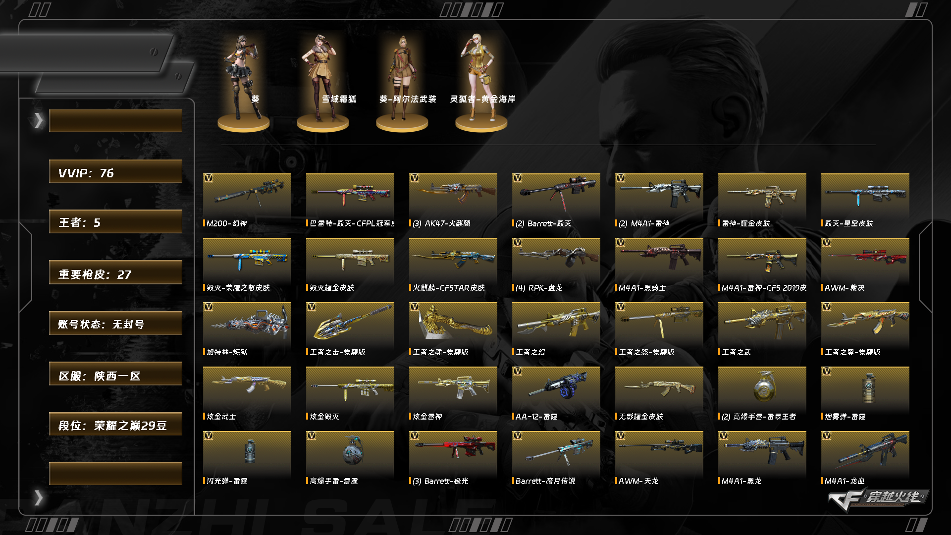 abca9514/西部/陕西一区/钱包注销/可排位/可二次/掌火id;/75v/【裁决三件套】/幻神/幻神电竞之星/裁决/q独角iii/白虎电玩蓝兔/朱雀电竞之星/毁灭/王者之击/王者之怒/王者之啸/王者之翼/雷神精英刀锋/火麒麟零纪元/王者之幻/王者之武/天龙曼陀罗/双面神竞