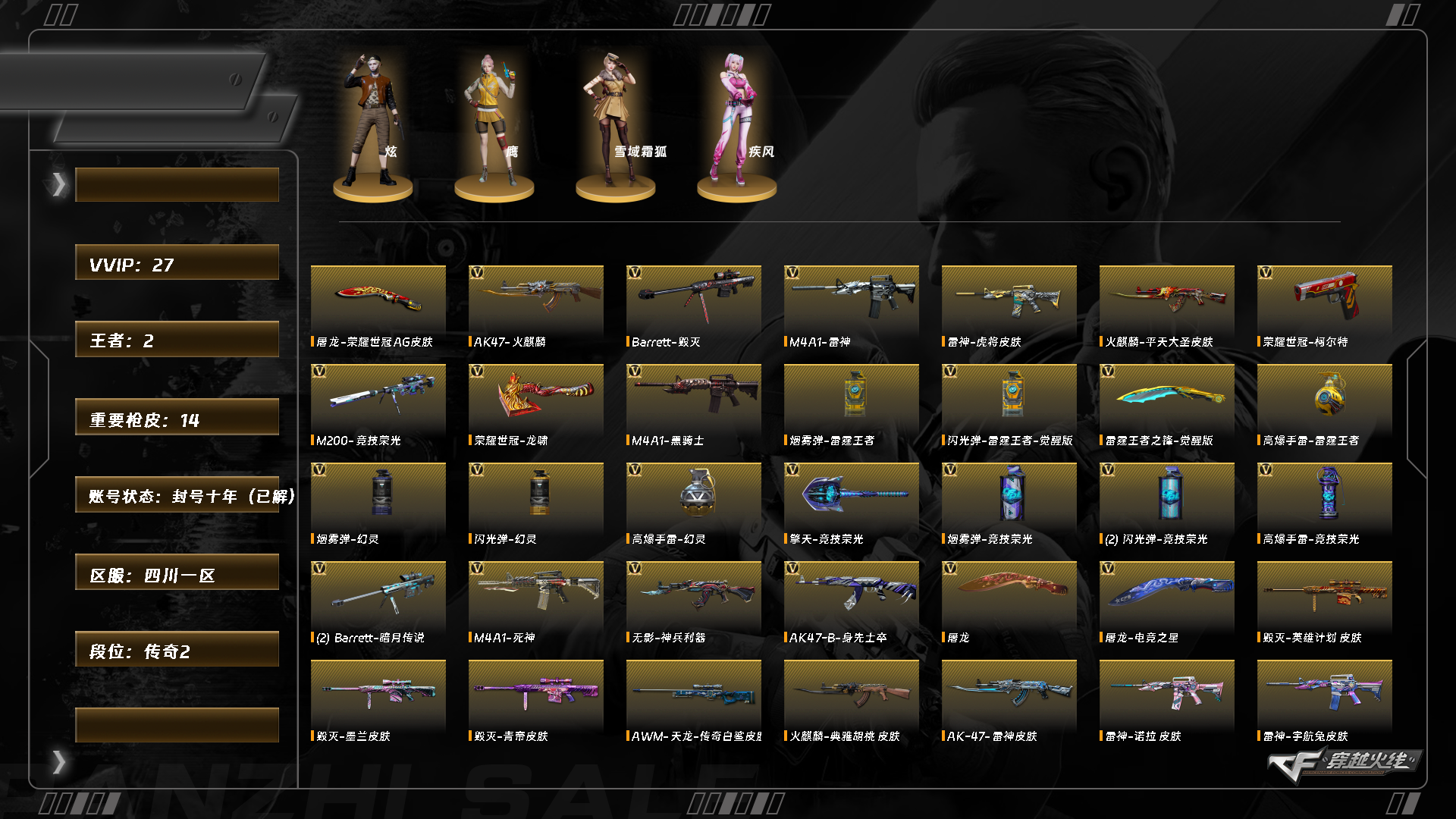 [15624698]5202/西部/四川一区/可排位/【传奇2】【lv.100 高阶大元帅】vip2/26v/m200竞技荣光/荣耀世冠柯尔特/毁灭/雷神/黑骑士/火麒麟/无影神兵利器/荣耀世冠龙啸/雷霆王者之锋/屠龙电竞之星/屠龙/屠龙电竞之星/【皮肤】毁灭英雄计划/毁灭青帝/雷神虎将/雷神诺