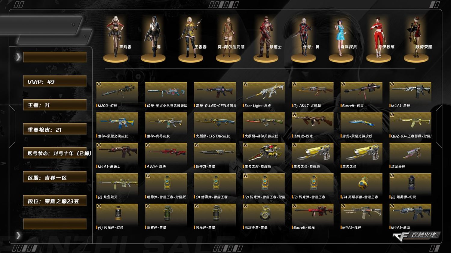 7983/北部/吉林一区/可排位/50v/幻神/幻神星火小队签名臻藏版/白虎/q王者蔷薇/柯尔特荣耀世冠白鲨2023/王者之灵/裁决/裁决羽掣/【四防角色/王者春/】/【角色】/零/审判者/零纪元/葵阿尔法武装/奇洋探员/乔伊教练/修道士/【音效卡/碧霄极光音效卡/黑龙音效卡/炼狱百战金芒庆