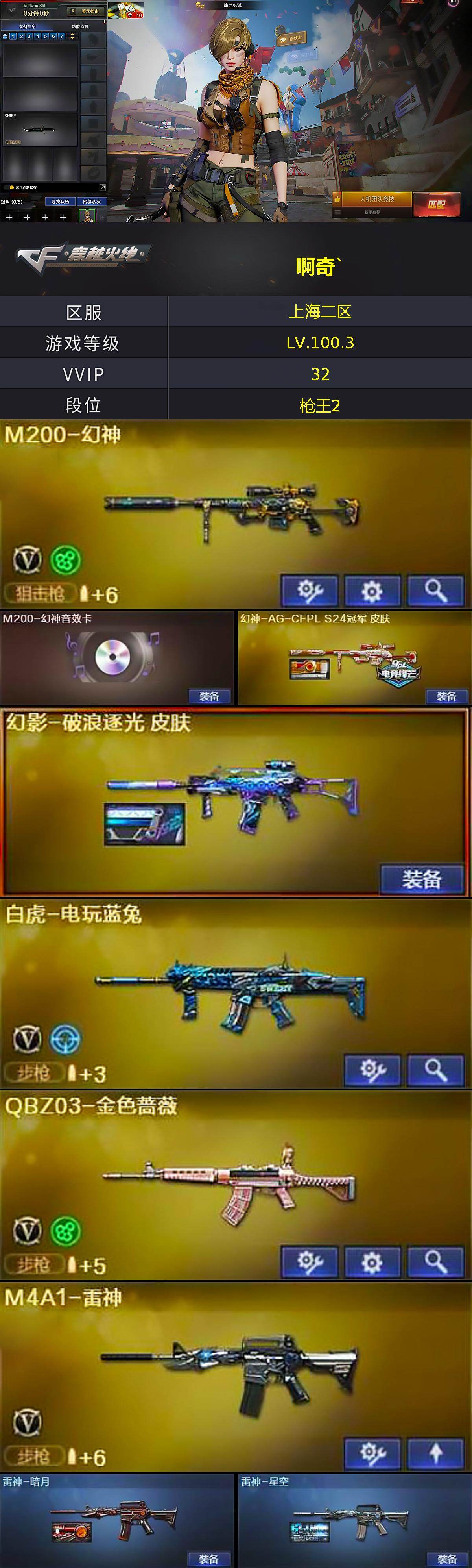 【1850】特60376可排位-可二次【上海二区/31v/vip6】【纯白无封号/幻神三件套/四防角色/7套雷】【m200-幻神/m200-幻神音效卡/幻神-ag-cfpl s24冠军 皮肤】【白虎-电玩蓝兔】【q03-金色蔷薇】【m4a1-雷神/雷神-星空/雷神-暗月】【ak47-火麒麟/火麒麟-cfstar/火麒麟-轻羽皮肤】【幻影-破浪逐光 皮肤】【无影-神兵利器】【m4a1-千变-孔明皮肤】【沙鹰-修罗/修罗-cfstar/修罗-能量核心】【天神-动感闪耀】【擎天-竞技荣光】【屠龙/屠龙-动感闪耀】【荣耀世冠-龙啸/龙啸-烈火龙威】【职业选手/王者春/龙儿-小淘气/暗夜-x/木兰/乔伊教练/青霞仙子/潘多拉-x/斯沃特-x/救世主-x/影武者-x/堕天使/复仇者】【白虎-电玩蓝兔/ak47-b-常胜将军/ak47-b-身先士卒/ak47-b-战士/ak-47-猩红传说】【ak12-天启】【barrett-暗月传说】【colt 1911-大黄蜂/柯尔特-萌杀/cop 357-青龙/新usp-呛王排位奖励3】【雷霆王者之锋/金刚伞-电玩红兔】【神圣爆裂者-末日iii/激光毁灭者iii-白马银呛/冰龙粉碎者-白马银呛2】【猫猫手套/迷你裂空之翼/夺魂】【王者之刺】【高爆手蕾-竞技荣光2/闪光丹-竞技荣光2/盐雾蛋-竞技荣光3】【高爆手蕾-雷霆王者7/闪光丹-雷霆王者/盐雾蛋-雷霆王者5】【炫金武士】【烟雾保护头盔/闪光护目镜/超级对讲机/超级背包/防弹头盔4/防弹衣4/c4工具钳4/手蕾包4/防化服】截图展示段位不代表实际段位,如赛季更新等不/拒因素发生变化、时限道具不保证所剩时间