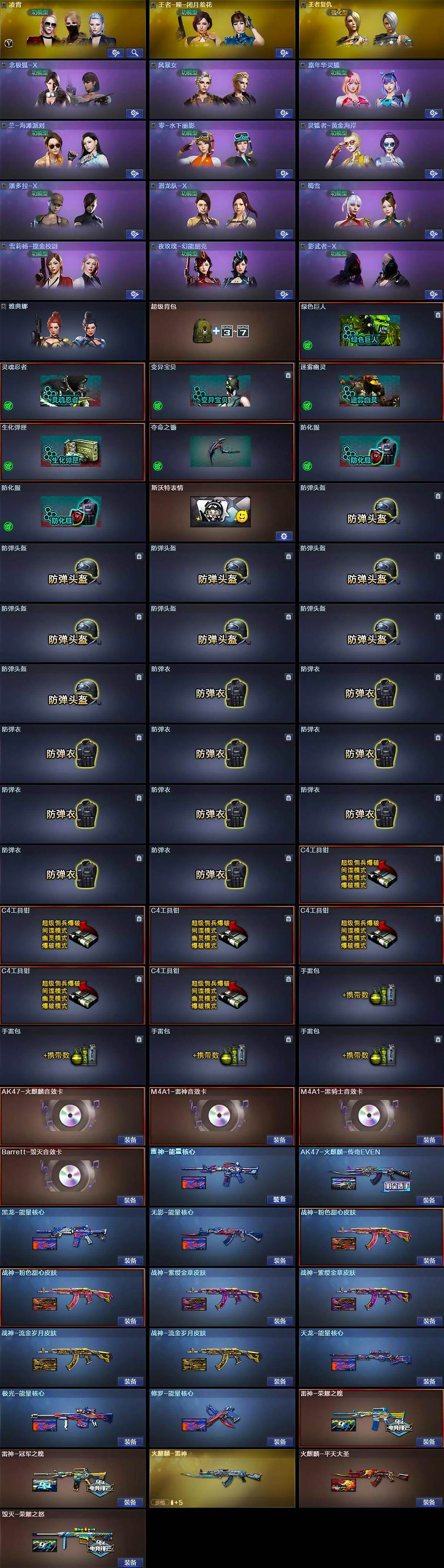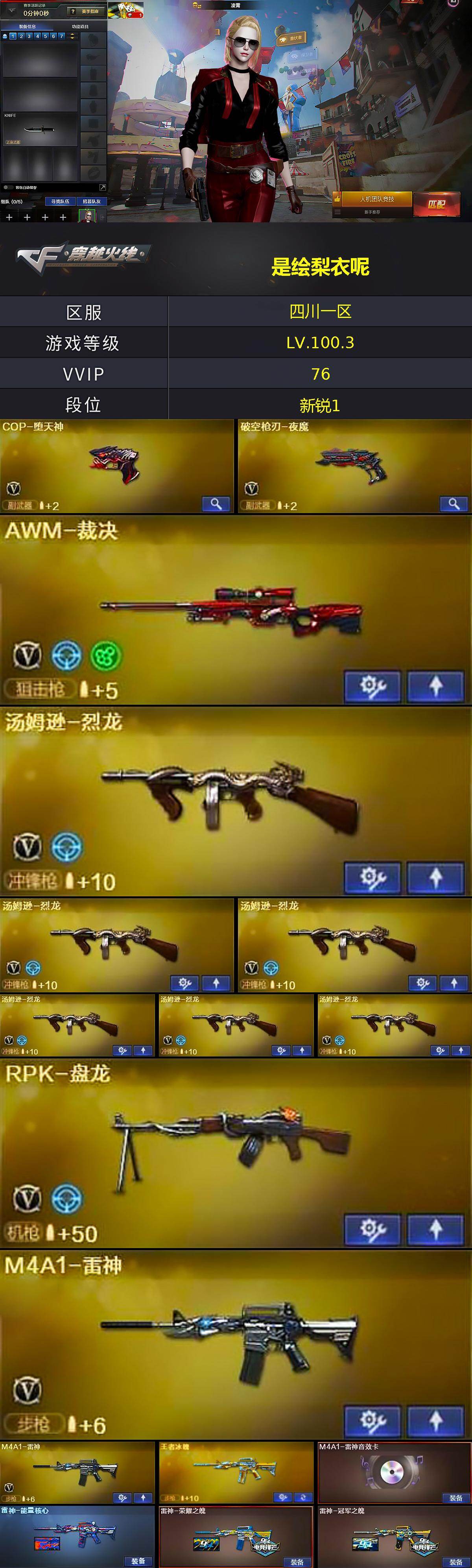 [15784039]四川一区-76v-10王者-4炫金 【热门武器】:m4a1-青龙,死亡之眼,m4a1-黑骑士,汤姆逊-烈龙6,rpk-盘龙,加特林-炼狱2,降世魔童,火麒麟-绝迹,cop-堕天神,沙鹰-修罗5 【王者炫金武器】:王者之幻,王者之魄,王者之心,王者之怒,王者之锋2,炫金毁灭2,炫金天龙,炫金修罗 【音效卡】:ak47-火麒麟音效卡,m4a1-雷神音效卡,m4a1-黑骑士音效卡,barrett-毁灭音效卡 【皮肤】:雷神-能量核心,雷神-荣耀之魄,雷神-冠军之魄,火麒麟-雷神,ak47-火麒麟-传奇even,火麒麟-平天大圣,毁灭-荣耀之怒,黑龙-能量核心,无影-能量核心,战神-粉色甜心皮肤2,战神-紫绶金章皮肤2,战神-流金岁月皮肤2,天龙-能量核心,极光-能量核心,修罗-能量核心 【角色】:凌霄,王者-瞳-闭月羞花,王者复仇,北极狐-x,风暴女,嘉年华灵狐,兰-海滩派对,零-水下丽影,灵狐者-黄金海岸,潘多拉-x,潜龙队-x,邱刚敖,蜀雪,雪莉杨-摸金校尉,夜玫瑰-幻能朋克,影武者-x,雅典娜 【人偶武器】:火麒麟-绝迹,火麒麟-灵狐,awm-灵狐-15周年嘉年华,m37-葵,迷你深渊冰龙,迷你牛魔王,夺魂,迷你牛牛2,深渊终结者手蕾,闪光丹-小乔,迷你巨石泰坦-魔花研究所,降世魔童 【暴走生化】:死亡之眼,超级对讲机 【挑战大师】:神圣爆裂者iii,冰龙粉碎者-白马银呛,vepr-12-金魔,kac-圣炎切割者iii,阐释者iii 【英雄级武器】:m4a1-千变,ak47-火麒麟,m4a1-黑龙,m4a1-雷神2,m4a1-黑骑士,ak47-无影,ak47-黑武士,ak12-天启,ak47-黑鲨,m4a1-龙血,m4a1-青龙,m4a1-夜魔,无影-神兵利器,王者之武-觉醒版,王者之势-觉醒版,王者之幻-觉醒版,ak-47-猩红传说3,ak47-b-战神,黑骑士-海王,黑武士-cf网剧冠军,awm-天龙2,barrett-毁灭2,awm-裁决,rpk-盘龙,加特林-炼狱2,汤姆逊-烈龙6,aa-12-雷霆,沙鹰-修罗5,沙鹰-天神,cop-堕天神,破空呛刃-夜魔,天神-cf网剧冠军,屠龙4,马来剑-夜魔,擎天,麒麟刺,擎天-cf网剧冠军,王者之啸-觉醒版,高爆手蕾-夜魔7,闪光丹-夜魔7,盐雾蛋-夜魔7 【道具】:超级背包