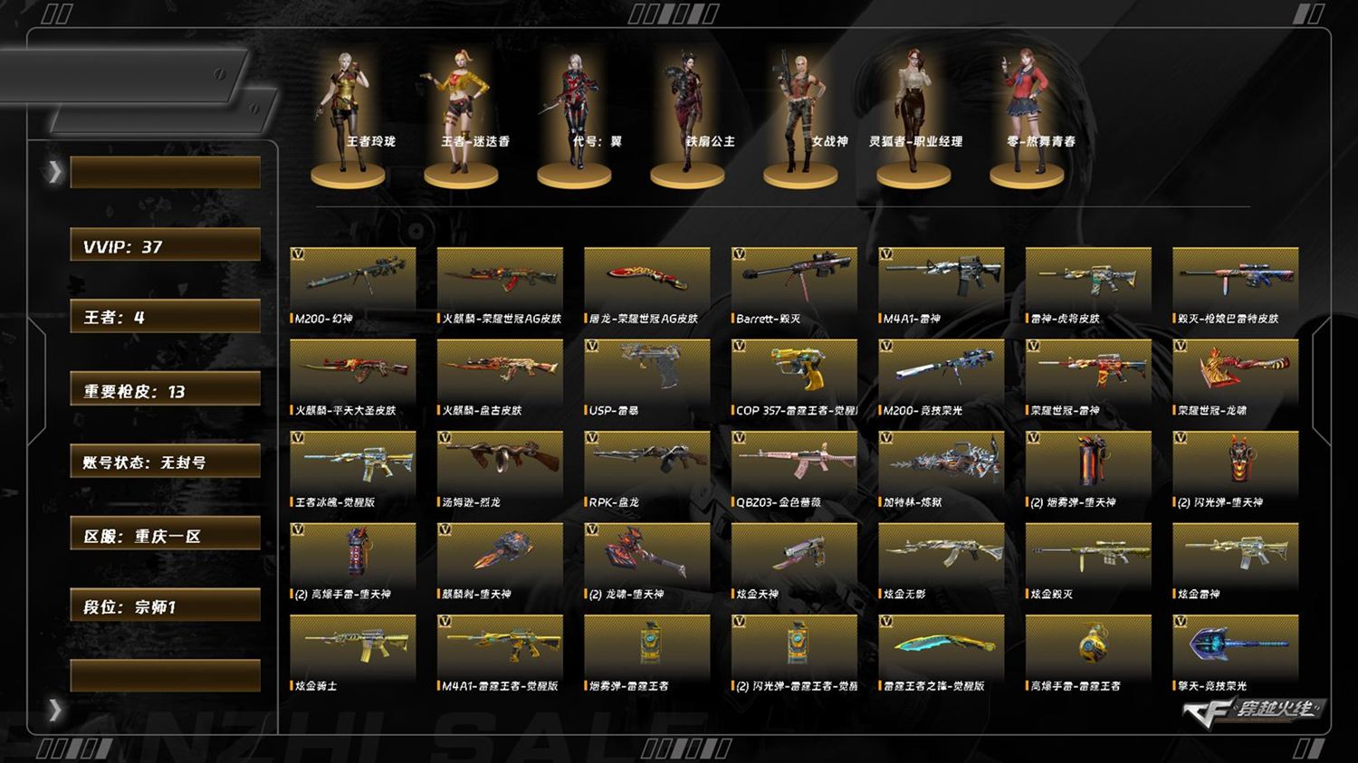 lc8010/西部/重庆一区/可排位/38v/幻神/lc200竞技荣光/q金色蔷薇/雷霆王者套装/lca雷霆王者/cop雷霆王者/荣耀世冠雷神/usp雷暴/【四防角色/王者迷迭香/灵狐者职业经理/】/【角色】/王者玲珑/【音效卡/毁灭音效卡/极光音效卡/火麒麟音效卡/】/【呛皮】/毁灭呛娘格雷姐