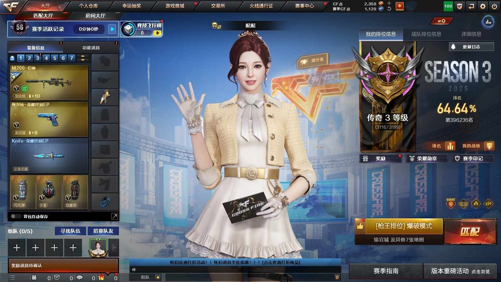 CFD511191号特24555可排位-可二次【广东一区/32V/vip6】【四防妮妮/EP活动全打穿/幻神三皮肤/3把EP柯尔特冠军之特/EP小刀/4个EP烟雾弹/雷神三件套】【M200-幻神/幻神-荣耀世冠EP 皮肤/幻神-宠儿-2021MVP/幻神-AG-CFPLS17冠军】【柯尔特-冠军之特3柯尔特-荣耀世冠EP】【白虎-迷你小艾】【白虎-AG-CFPLS20冠军】【M4A1-雷神2/M4A1-雷神-动感闪耀音效卡/雷神-荣耀之魄/雷神-宠儿-2019MVP/雷神-宇航兔皮肤/雷神-暗月】【火麒麟-CFSTAR/火麒麟-雷神】【黑骑士-海王】【HK417-朱雀】【无影-神兵利器/无影-能量核心】【Barrett-极光】【烈龙-云海游龙】【修罗-云海游龙音效卡/修罗-CFSTAR2】【天神-动感闪耀】【麒麟刺】【擎天-云海游龙音效卡/擎天-云海游龙】【屠龙-荣耀世冠AG/屠龙-动感闪耀】【龙啸-烈火龙威】【王者炽天使/王者-瞳-闭月羞花/暗夜-X/幽/木兰/云海玲珑/乔伊教练/麻雀/妲己/娟娟/潘多拉-X/救世主-X/堕天使/复仇者】【AK47-黑鲨】【Colt1911-小故障2/Colt 1911-大黄蜂2/新USP-枪王排位奖励4】【斩神刀/马来剑-夜魔】【神圣爆裂者-末日III/激光毁灭者III-白马银枪】【斯泰尔-巧克力2】【手雷-云海游龙】【闪光弹-幻灵】【高爆手雷-夜魔/闪光弹-夜魔/烟雾弹-夜魔】【炫金毁灭】【语音特效-云海游龙】【超级护目镜/烟雾保护头盔/闪光护目镜/超级背包/防弹头盔4/防弹衣4/C4工具钳4/手雷包4/防化服2】截图展示段位不代表实际段位,如赛季更新等不/拒因素发生变化、时限道具不保证所剩时间