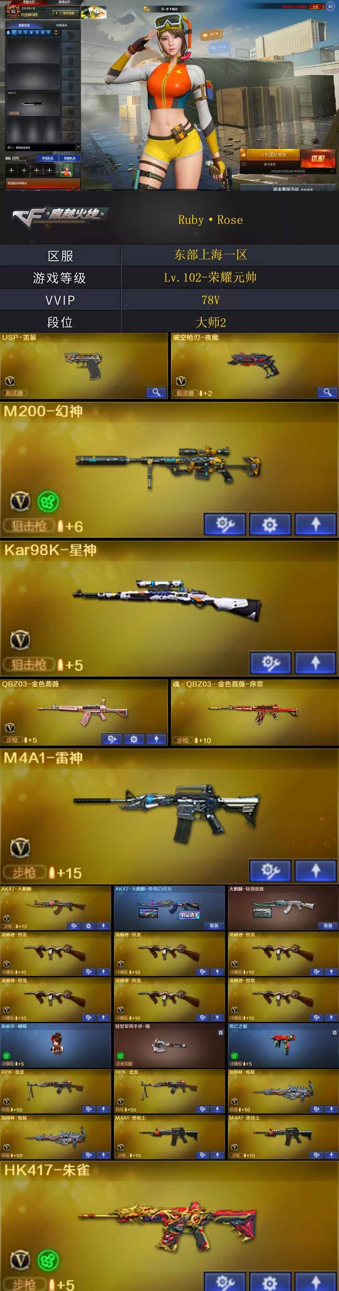 东部战区 编号bb1231 【可二次实名】【可排位】 id英文 ruby · rose 【大师段位】 【幻神】【星神】【q金色蔷薇】 【usp雷暴】【破空呛刃-夜魔】 生化配置:【⑥烈龙蝴蝶斯泰尔】【手斧-镜】 【死亡之眼】【2盘龙2加特林炼狱】 【毁灭带皮肤带音效卡三件套】【毁灭音效卡】 【黑骑士带皮肤带音效卡三件套】【黑骑士音效卡】 雷套是满的 排位生化双用号 喜欢带走