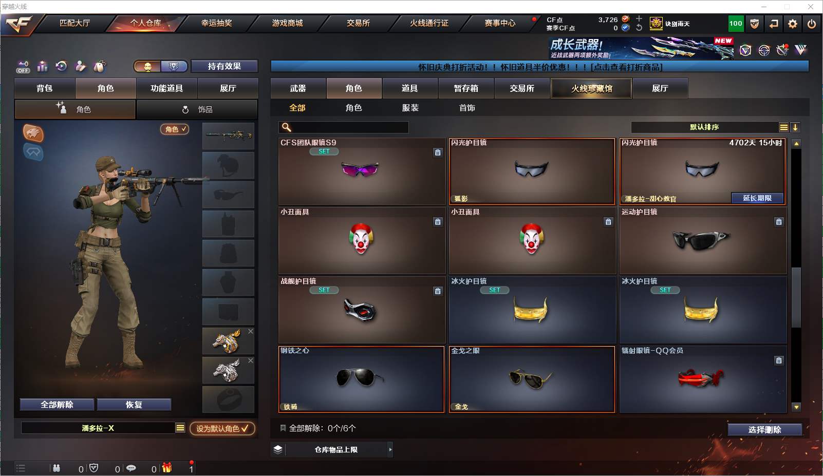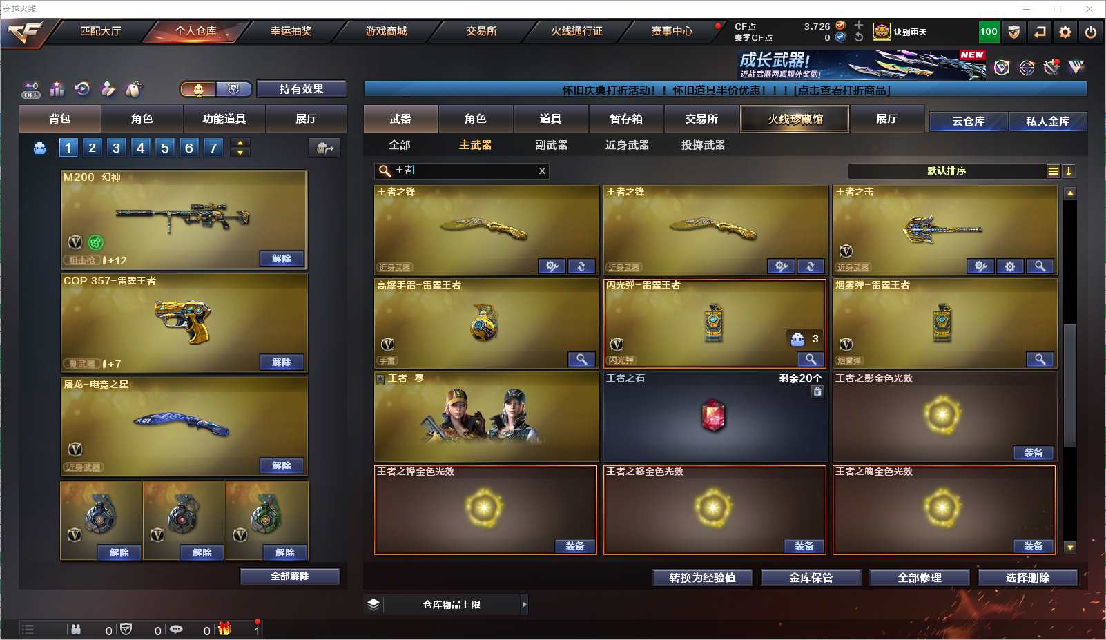 077-CF4389 【江西一区】【可二次】【可排位】 118v 15王者 6炫金 【南部精品幻神小号】【幻神裁决qbz绝版幻兽雷】【7烈死亡之眼】 【重要角色】审判者】【零】【葵】【樱】【瞳】【魅影】【迷迭香】【幻面灵狐】【王者-零】【狐影】【修道士】【乔伊教练】【铁骑荣耀】【空】【零-水下丽影】【灵狐者-黄金海岸 【英雄武器】M200-幻神】【Barrett-毁灭x4】【Barrett-极光】【barrett-金色蔷薇】【Barrett-暗月传说】【AWM-天龙】【AWM-裁决】【M4A1-雷神x3】【M4A1-黑龙】【M4A1-龙血】【M4A1-千变】【M4A1-黑骑士】【M4A1-武圣】【M4A1-猎神】【M4A1-玫瑰精灵】【王者之魄-觉醒版】【王者之幻-觉醒版】【白虎-电玩蓝兔】【AK47-火麒麟x4】【AK47-无影x4】【无影-神兵利器】【AK47-黑鲨】【AK47-黑武士】【AK-47-猩红传说x8】【AK47-机械迷城】【AK47-B-战士】【AK47-B-战神】【AN94-超新星x3】【QBZ03-金色蔷薇】【9A91-烈火x3】【RPK-盘龙x2】【汤姆逊-烈龙x7】【AA-12-雷霆】【加特林-炼狱x2】【炼狱-悦蓝-觉醒版】【沙鹰-天神x2】【沙鹰-修罗x4】【沙鹰-幻兽】【麒麟刺-堕天神x2】【龙啸】【龙啸-堕天神】【擎天】【王者之击-觉醒版】【屠龙x4】【雷霆之锋】【女皇利刃-幻兽】【高爆手雷-幻兽】【高爆手雷-雷霆】【高爆手雷-堕天神x4】【烟雾弹-幻兽】【烟雾弹-雷霆】【烟雾弹-堕天神x4】【烟雾弹-雷霆王者-觉醒版】【闪光弹-幻兽】【闪光弹-雷霆】【闪光弹-堕天神x4】【闪光弹-雷霆王者-觉醒版】【M200-玄龙】【Glock18-雪夜奇缘】【手雷-雪夜奇缘】【HK417-朱雀-电竞之星】【机械迷城-穹宇】【Barrett-碧霄极光】【屠龙-电竞之星 【王者武器】王者冰魄】【王者之武】【王者之势】【王者之怒x3】【王者之力x2】【COP 357-雷霆王者】【王者之锋x3】【高爆手雷-雷霆王者 【小人枪】M82A1-水枪-不败狙神】【巴雷特-零-水下丽影】【M37-葵】【COP-旗袍】【迷你深渊冰龙】【迷你宝贝】【魔能飞环-曼陀罗】【迷你裂空之翼】【冰火魔兽 【其他重要武器】炫金雷神】【炫金武士】【炫金骑士】【炫金毁灭】【炫金天龙】【炫金修罗【重要武器皮肤】毁灭-英雄计划 皮肤】【毁灭-荣耀之怒】【毁灭-暗月】【毁灭-青帝皮肤】【极光-能量核心】【AWM-天龙-传奇70KG】【AWM-天龙-传奇白鲨】【天龙-秘银】【火麒麟-CFSTAR】【火麒麟-AG】【火麒麟-雷神】【火麒麟-冠军之心】【无影-能量核心】【M4A1-千变-孔明皮肤】【雷神-能量核心】【雷神-星空】【黑骑士-摸金校尉】【黑龙-能量核心】【战神-流金岁月皮肤】【战神-紫绶金章皮肤】【战神-粉色甜心皮肤】【修罗-星空】【修罗-CFSTAR】【修罗-能量核心 【重要音效卡】M4A1-雷神音效卡】【M4A1-黑骑士音效卡】【Barrett-毁灭音效卡】【Barrett-碧霄极光音效卡 等等装备和皮肤~ 截图展示段位不代表实际段位,如赛季更新等不可抗拒因素发生变化、时限道具不保证所剩时间,其余道具看截图或咨询客服 【小述账号 安全无忧】