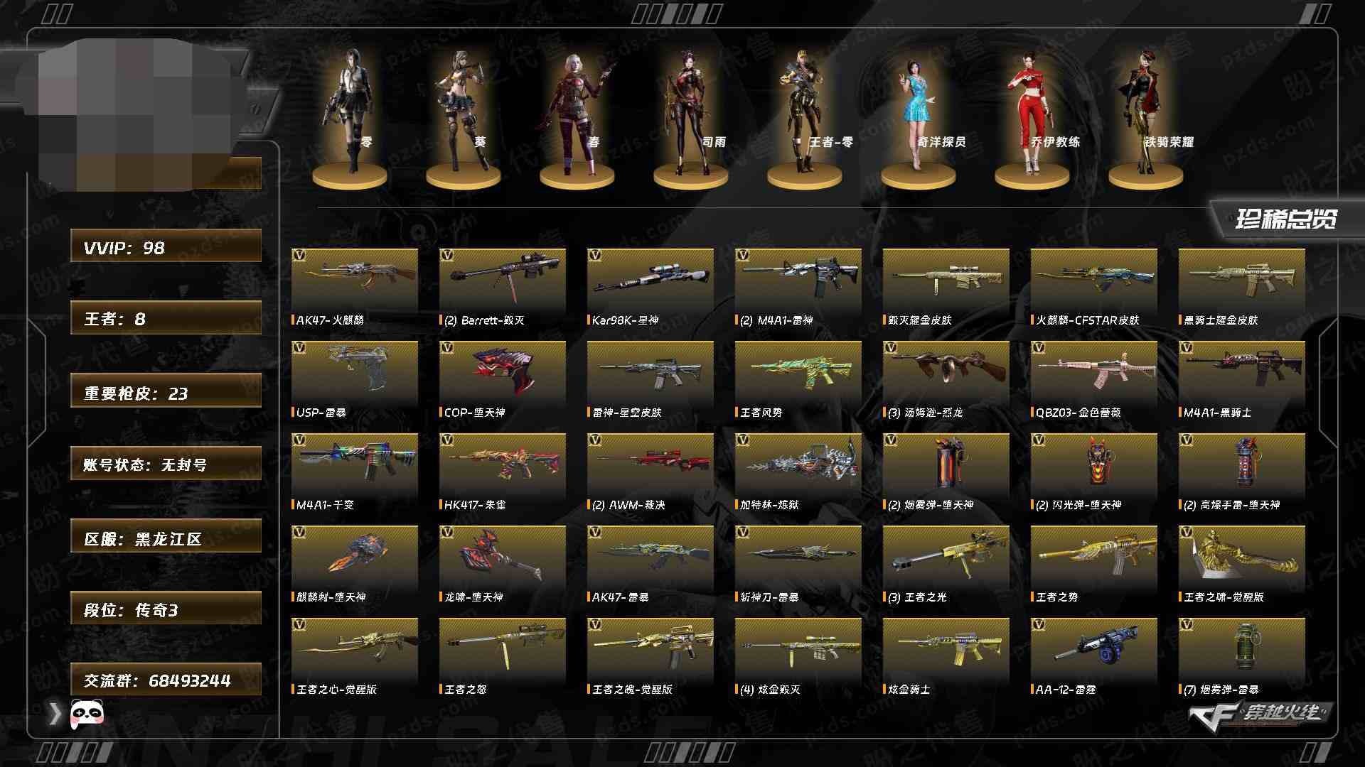 【可否排位】可排位 【账号状态】无封号 【区服】黑龙江区 【VIP】VIP3 【游戏段位】传奇3 【游戏等级】Lv.102 荣耀元帅 【段位排名】879588 【CF点】61372 【VVIP数量】98 【重要套装】雷暴套装 【重要角色】_零_葵_春司雨王者-零奇洋探员乔伊教练铁骑荣耀 【传说武器】 【英雄武器】Barrett-毁灭2Barrett-极光Barrett-暗月传说2Kar98K-星神AWM-天龙AWM-裁决2M4A1-雷神2M4A1-死神M4A1-黑龙4M4A1-龙血2M4A1-千变M4A1-黑骑士黑骑士-海王2M4A1-玫瑰精灵5王者之魄-觉醒版HK417-朱雀AK12-天启2AK47-火麒麟无影-神兵利器AK47-雷暴AK47-黑鲨2AK47-黑武士AK-47-猩红传说AK47-B-战神QBZ03-金色蔷薇王者之心-觉醒版汤姆逊-烈龙3AA-12-雷霆加特林-炼狱COP-堕天神沙鹰-天神沙鹰-修罗USP-雷暴麒麟刺3麒麟刺-堕天神龙啸2龙啸-堕天神王者之啸-觉醒版擎天屠龙斩神刀-雷暴高爆手雷-雷暴7高爆手雷-堕天神2烟雾弹-雷暴7烟雾弹-堕天神2闪光弹-雷暴7闪光弹-堕天神2机械迷城-穹宇金色蔷薇-古蛇迷踪修罗-古蛇迷踪唐刀-古蛇迷踪高爆手雷-古蛇迷踪烟雾弹-古蛇迷踪 【王者武器】王者雷影王者风势王者之势王者之光3王者之怒 【小人枪】HK417-朱雀-蛇隐宗AWM-灵狐-15周年嘉年华M37-葵迷你火种迷你白狐迷你牛牛魔能飞环-曼陀罗 【其他重要武器】炫金骑士炫金毁灭4M4A1-十二生肖·龙-雷神M4A1-英雄-能量核心火麒麟-暗月AK47-冰龙粉碎者M4CQBR-AP-孔明AK47-大帝林肯2M4A1-Guitar 炫彩6M14EBR-炎龙2M4A1-C-海浪M4A1-水枪-机甲核心AK-47-红龙M14EBR-情人节2020黄金AK-475M4A1-电音2M14EBR-赤血龙魂AK47-烛龙M4A1-圣诞2021M4A1-S-火种M4A1-秘银赤龙3AK47-QT百城AK47AK47-轮回M4A1-紫狱3AK-47-二次元AK47-SS-枪王排位3AK12-枪王排位2M4A1-SS-枪王排位AK47-枪娘AK-103-红色悦动HK417-红龙9A91-赤血龙魂2AK47枪王排位IIAK47-圣诞节[2019]M4A1-青龙.M4A1-樱AK47-SS-9周年M4A1-肯德基M4A1-XS-翔龙M4A1-XS-赤龙AK47-樱花M4A1-战龙98K-烛龙2M82A1-夏日AWM-恶棍-枪王排位巴雷特-情人节2020M82A1-水枪-机甲核心AWM-银月Barrett-炎龙Barrett-耀龙Barrett-麟龙黄金AWM2M200-枪王排位AWM-小故障M200-青花瓷M200-落樱M200-大黄蜂AWM-A-圣诞2021AWM-卡通2AWM-SAWM-T暗金M200M200-赤血龙魂4M200-万圣节2018M200-情人节2019Barrett-翔龙凤凰之力AWM-深海猎手AWM-PinkM200-万圣节末日裁决者巨龙咆哮Ⅲ2KAC-小动物4KAC-耀龙