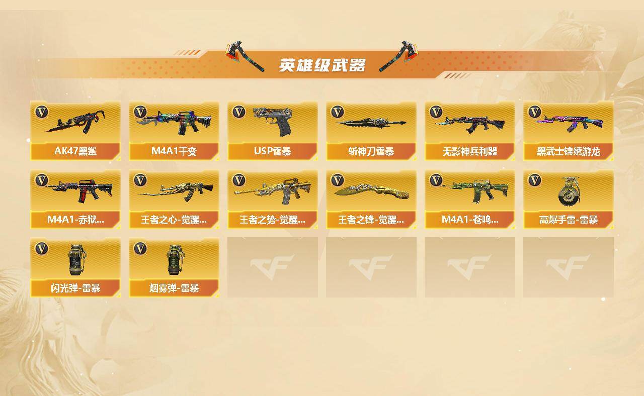 [16086023]江苏一区-88v-11王者-0炫金 【热门武器】:q03-金色蔷薇,scar light-白虎,m200-幻神,死亡之眼,汤姆逊-烈龙6,rpk-盘龙6,加特林-炼狱,usp-雷暴2,沙鹰-修罗2 【王者炫金武器】:超新星-悦享,王者之幻,王者之翼,王者之势,王者之武,王者之影,王者之力,王者之锋 【音效卡】:ak47-火麒麟音效卡,m4a1-雷神音效卡,barrett-毁灭音效卡 【皮肤】:雷神-荣耀之魄,雷神-星空,雷神-源计划2.0专属 皮肤,火麒麟-平天大圣,火麒麟-心动糖果,毁灭-荣耀之怒,毁灭-星空,毁灭-虹光风暴 皮肤,m4a1-千变-孔明皮肤,战神-流金岁月皮肤,极光-能量核心,修罗-能量核心 【角色】:葵,春,战地猎狐,王者-魅影,乔伊教练,空,暗夜-x,飞虎队-x,风暴女,嘉年华灵狐,灵狐者-黄金海岸,斯沃特-x,影武者-x,游珑儿 【人偶武器】:awm-灵狐-15周年嘉年华,cop-旗袍,迷你生化手蕾2,生化手蕾-机甲核心2 【暴走生化】:异变清道夫,死亡之眼,超级对讲机 【挑战大师】:神圣爆裂者iii,kac-圣炎切割者iii,神圣爆裂者-末日iii2,阐释者iii 【英雄级武器】:m4a1-千变,ak47-火麒麟2,m4a1-黑龙,m4a1-雷神2,ak47-无影4,m4a1-死神,an94-超新星2,ak47-黑鲨,ak47-雷暴,scar light-白虎,无影-神兵利器,黑武士-锦绣游龙,q03-金色蔷薇,王者之心-觉醒版,王者之势-觉醒版,awm-天龙,barrett-毁灭3,barrett-极光,awm-裁决2,m200-幻神,rpk-盘龙6,加特林-炼狱,汤姆逊-烈龙6,aa-12-雷霆,沙鹰-修罗2,沙鹰-天神3,usp-雷暴2,屠龙3,龙啸4,擎天3,麒麟刺,斩神刀-雷暴,王者之锋-觉醒版,高爆手蕾-雷暴7,闪光丹-雷暴7,盐雾蛋-雷暴7,m4a1-赤狱骑士,m4a1-苍鸣雷神 【道具】:bs战队炫彩背包,cfs限定背包,云山科技背包,炫彩背包,女皇终结者-魔龙之吻,救世主-黑桃战神,妩媚妖姬,黄金生化钩,绿色巨人,灵魂忍者2,变异宝贝,迷雾幽灵2,生化弹匣,夺命之镰,防化服2,金色流光-呛王排位2,流光-再燃火线,呛王排位28赛季金色流光,呛王排位29赛季金