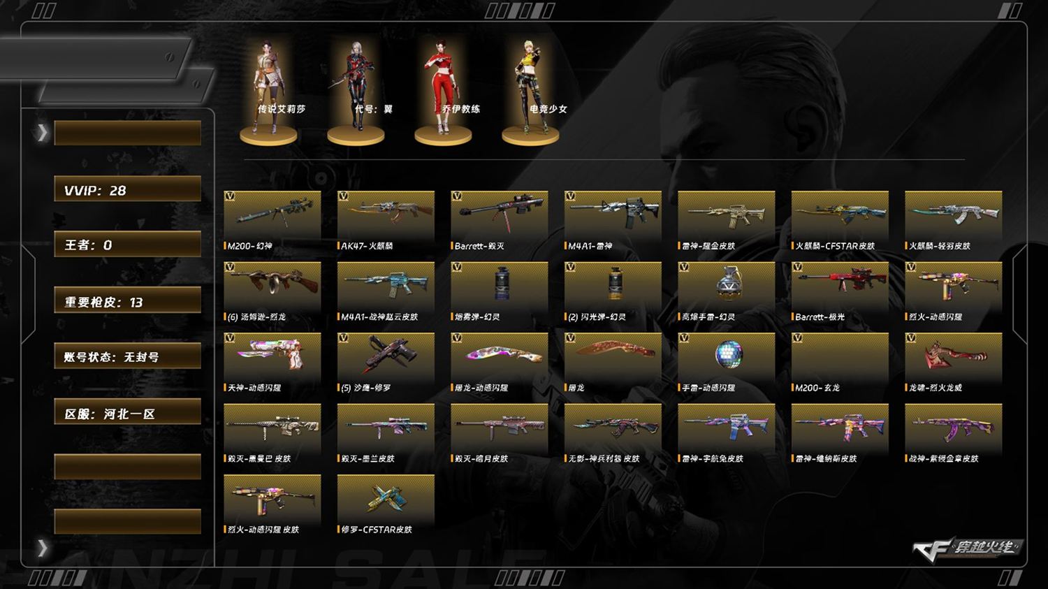 8102/北部/河北一区/可排位/27v/【传说四防角色/传说艾莉莎】/幻神/6烈龙/5修罗/烈火动感闪耀/雷神/雷神宇宙兔/雷神战神赵云/雷神耀金/雷神维纳斯/【角色】/乔伊教练/【呛皮】/烈火动感闪耀/无影神兵利器/毁灭黑曼巴/火麒麟轻羽/【小人呛】/斯泰尔蝴蝶/永久ac/找回包赔