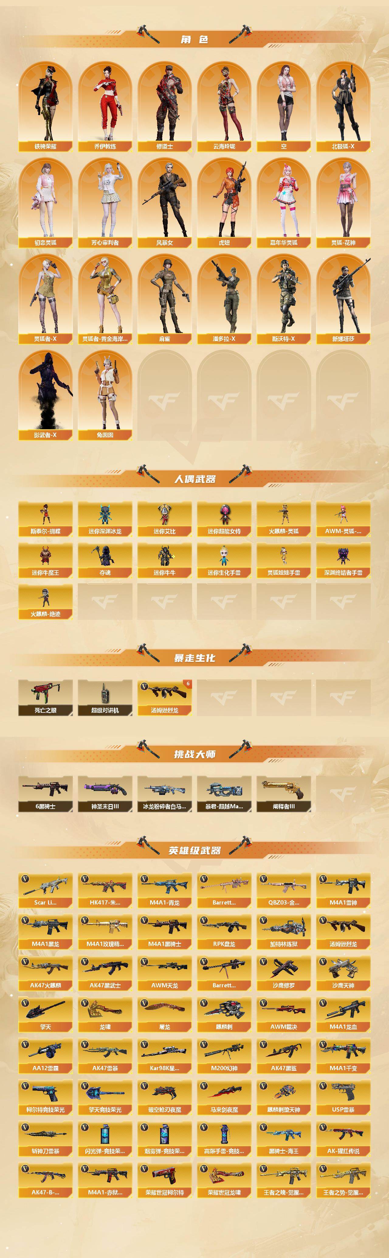 [16161592]江苏一区-136v-19王者-8炫金 【传说武器】:传说光耀,传说暗裔 【热门武器】:传说光耀,传说暗裔,q03-金色蔷薇3,scar light-白虎,hk417-朱雀,m4a1-青龙,m200-幻神,死亡之眼2,荣耀世冠-柯尔特,kar98k-星神,m4a1-黑骑士8,汤姆逊-烈龙6,rpk-盘龙,加特林-炼狱4,斯泰尔-蝴蝶,火麒麟-绝迹,usp-雷暴,cop 357-雷霆王者,沙鹰-修罗7,荣耀世冠-龙啸,金刚伞 【王者炫金武器】:王者之戮,王者之翼,王者之武,王者之心,王者之光2,王者之灵2,cop 357-雷霆王者,炫金火麒麟,炫金骑士,炫金黑龙,炫金千变,炫金武士,炫金超新星,炫金毁灭2 【音效卡】:ak47-火麒麟音效卡,m4a1-雷神音效卡,m4a1-黑龙音效卡,barrett-毁灭音效卡,70kg语音包,barrett-碧霄极光音效卡 【皮肤】:幻神-冠军之幻,白虎-梅雀衔霜 皮肤,烈龙-星空,汤姆逊-烈龙-末日皮肤,雷神-暗月,雷神-能量核心,雷神-荣耀之魄,雷神-星空,雷神-虎将,雷神-耀金皮肤,雷神-传奇n9,雷神-宠儿-2019mvp,火麒麟-雷神,火麒麟-冠军之心,ak47-火麒麟-传奇even,火麒麟-平天大圣,火麒麟-百城,火麒麟-心动糖果,毁灭-荣耀之怒,毁灭-星空2,毁灭-黑大圣皮肤,毁灭-风暴,m4a1-千变-孔明皮肤,m4a1-黑龙-361,黑骑士-暗月,黑骑士耀金皮肤,ak47-黑武士-3612,战神-紫绶金章皮肤2,战神-流金岁月皮肤,ak47-b-常胜将军-刘备,awm-天龙-传奇70kg,awm-天龙-传奇白鲨2,修罗-能量核心,修罗-星空 【角色】:葵,春,电竞教官-云悠悠,王者-瞳-闭月羞花,王者-零,王者春,王者-魅影,王者王力宏,乔伊教练,修道士,云海玲珑,炽天使,空,北极狐-x,初恋灵狐,芳心审判者,风暴女,虎妞,嘉年华灵狐,灵狐-花神,灵狐者-x,灵狐者-黄金海岸,麻雀,潘多拉-x,青霞仙子,斯沃特-x,铁骑荣耀,兔囡囡,新娜塔莎,樱-青春偶像,影武者-x,职业选手 【人偶武器】:火麒麟-绝迹,火麒麟-灵狐,斯泰尔-蝴蝶,awm-灵狐-15周年嘉年华,迷你深渊冰龙2,迷你牛魔王,夺魂,迷你牛牛,迷你生化手蕾,深渊终结者手蕾,迷你艾比,迷你超能女侍,灵狐娃娃手蕾 【暴走生化