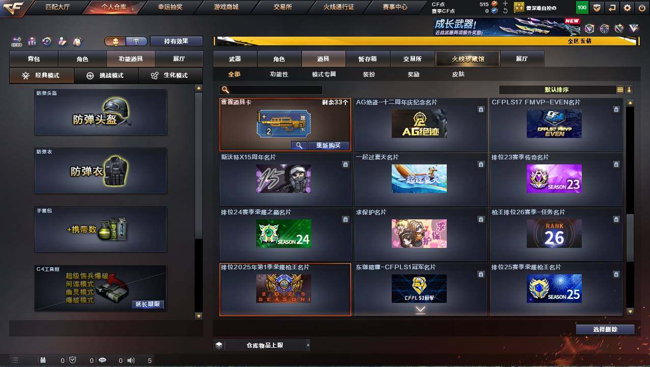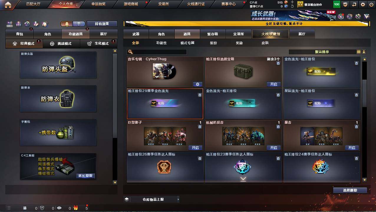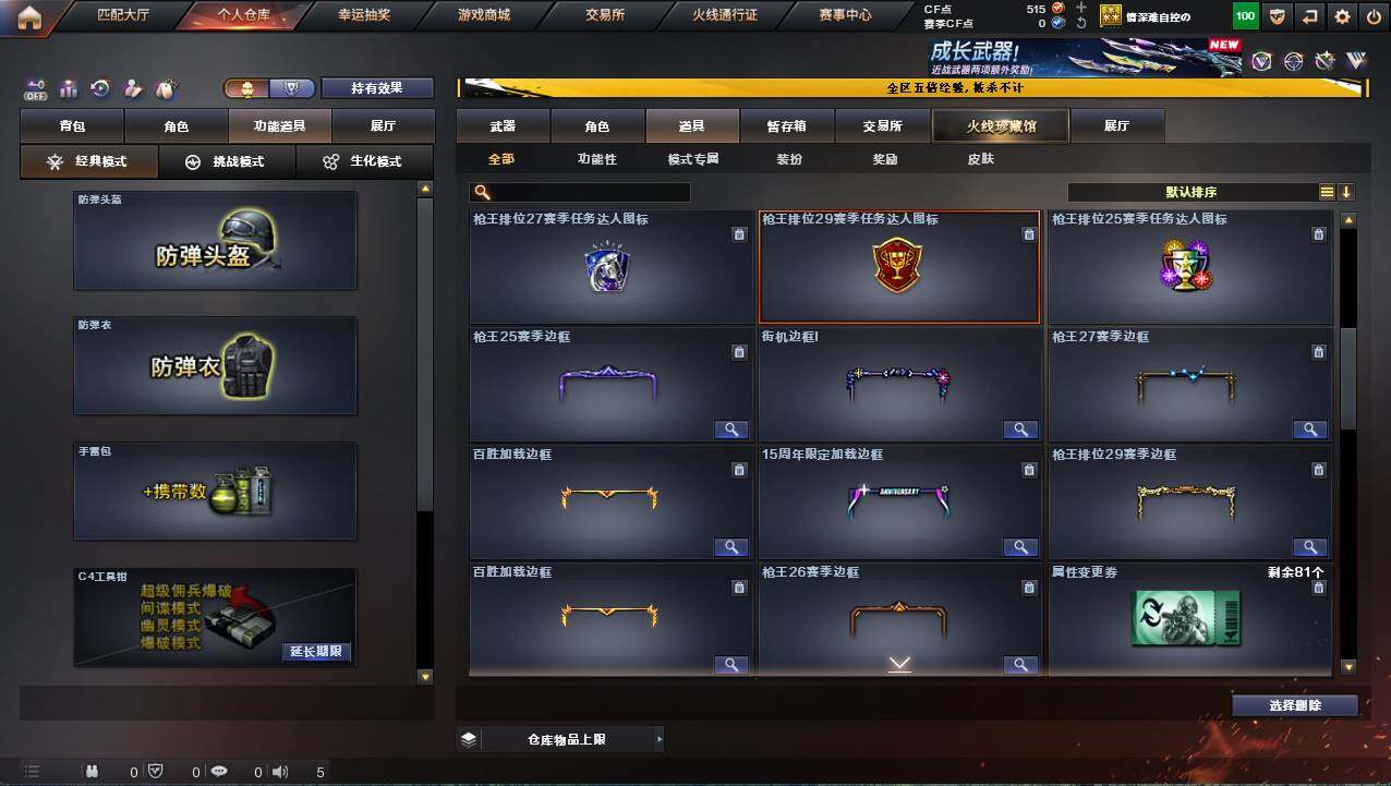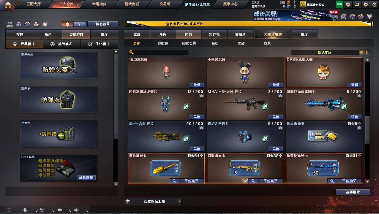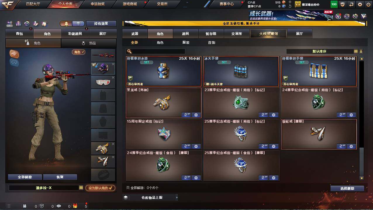 河北一区-17v-1炫金 【热门武器】:scar light-白虎,m200-幻神,m4a1-黑骑士 【王者炫金武器】:炫金火麒麟 【皮肤】:幻神-星耀 皮肤,雷神-冠军之魄,火麒麟-冠军之心,火麒麟-平天大圣,火麒麟-心动糖果,黑骑士-战神马超,战神-流金岁月皮肤 【角色】:嘉年华灵狐,潘多拉-x,斯沃特-x,樱-青春偶像,樱-战斗天使,职业选手 【人偶武器】:芭蕾特-零-水下丽影,awm-