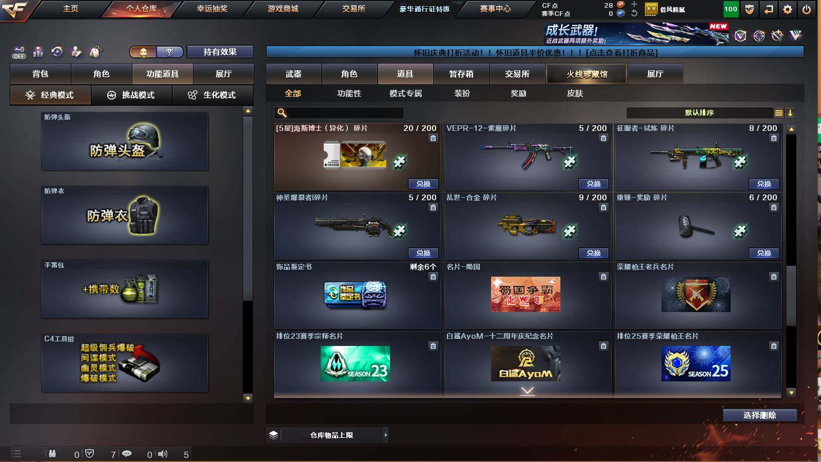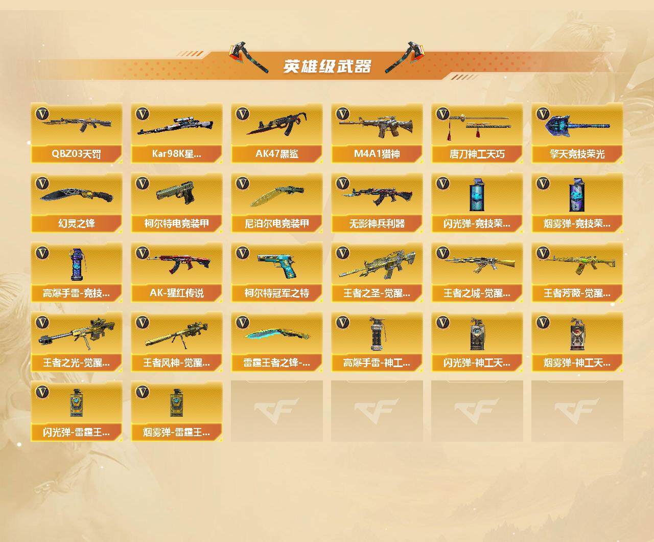 湖南一区-57v-15王者-1炫金 【热门武器】:q03-金色蔷薇2,死亡之眼,柯尔特-冠军之特,kar98k-星神,金色小号,c.a.t,cat-刀锋,m4a1-黑骑士,rpk-盘龙,加特林-炼狱3,沙鹰-修罗3,黄金猫猫手套-白鲨 【王者炫金武器】:雷霆王者之锋,炫金武士 【音效卡】:ak47-火麒麟音效卡,m4a1-雷神音效卡,m4a1-黑骑士音效卡,barrett-毁灭音效卡