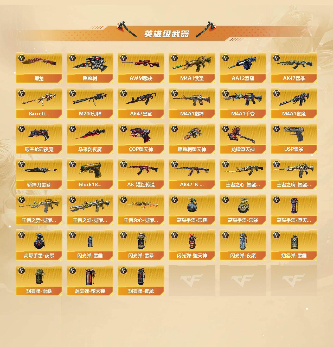 河南一区-119v-8王者-8炫金 【热门武器】:m200-幻神,死亡之眼2,q03-街机,m4a1-黑骑士,汤姆逊-烈龙6,rpk-盘龙3,加特林-炼狱2,usp-雷暴,cop-堕天神,沙鹰-修罗2 【王者炫金武器】:王者之影,王者之怒,王者之击,炫金黑龙,炫金雷神3,炫金武士,炫金超新星,炫金天龙,炫金修罗 【音效卡】:ak47-火麒麟音效卡,m4a1-雷神音效卡,m4a1