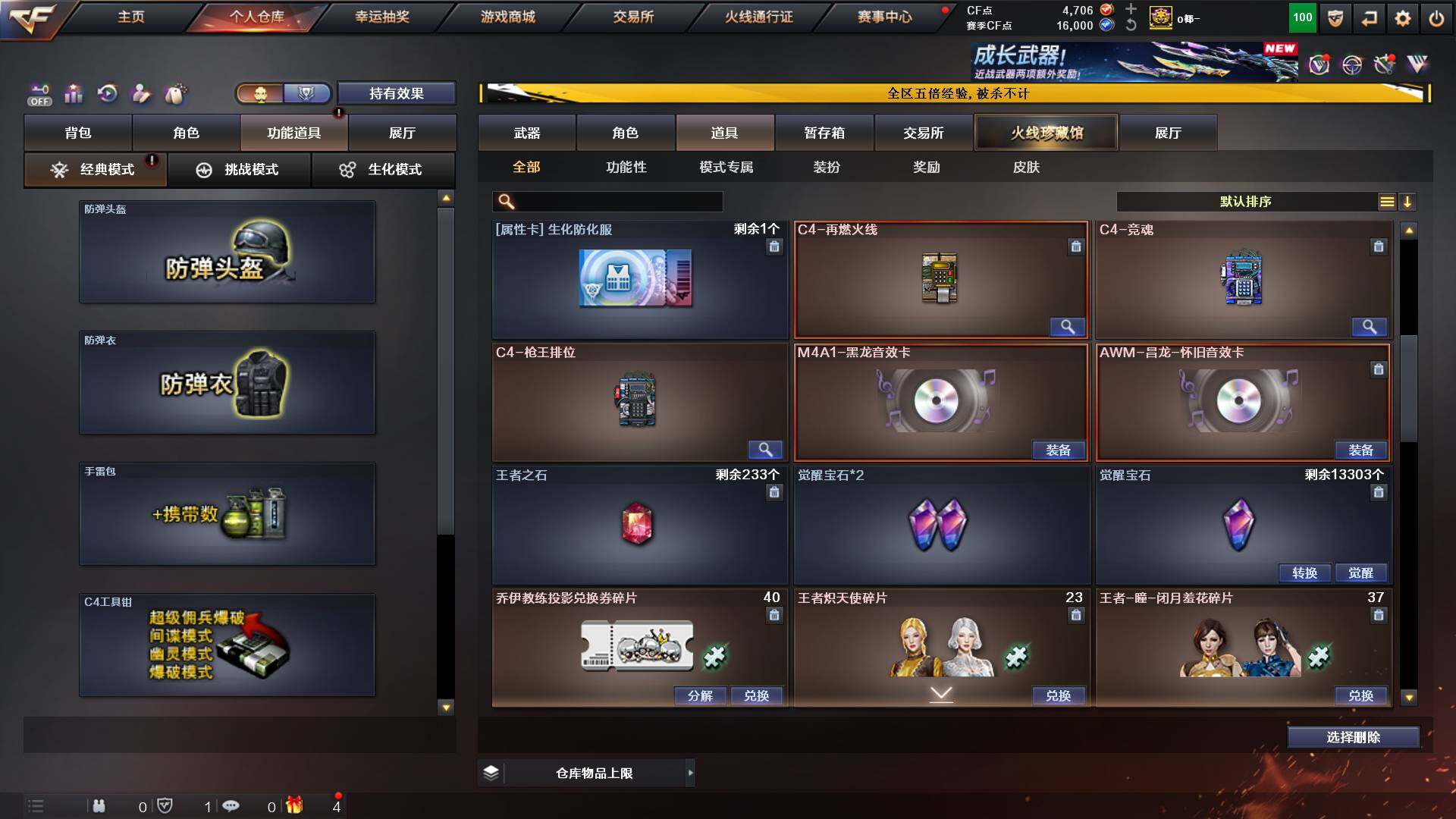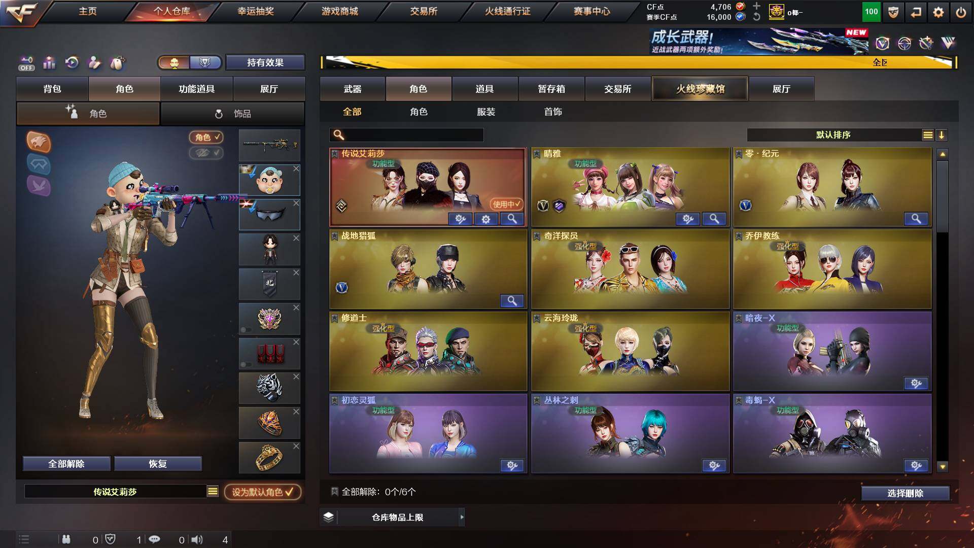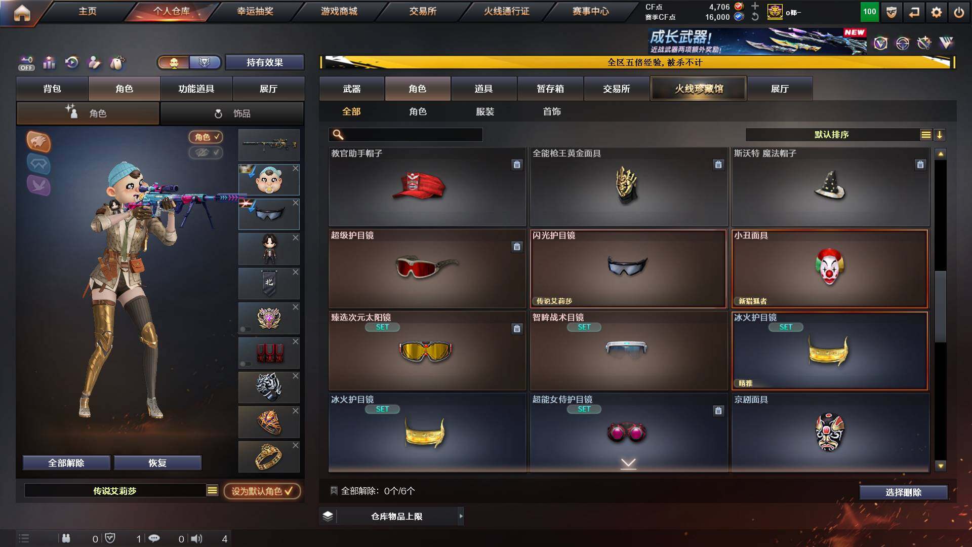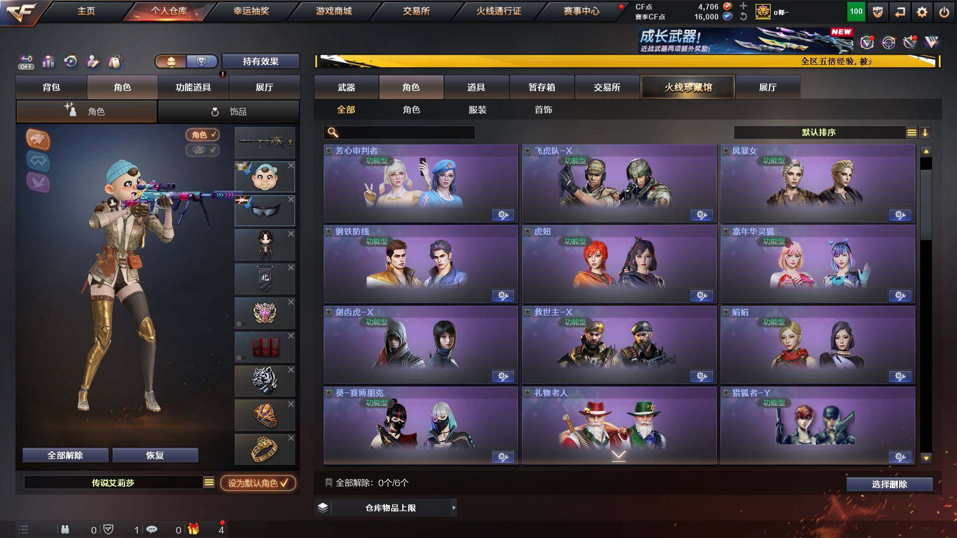 山东一区-48v-11王者-1炫金 【传说角色】:传说艾莉莎 【热门武器】:q03-金色蔷薇,m200-幻神,白虎-电玩蓝兔,毒蜂,m4a1-黑骑士3,羊驼玩偶,cop-白鲨,cop 357-幻灵,沙鹰-修罗3,炽芒蝶刃 【王者炫金武器】:炫金千变,王者之魄高爆手蕾2,王者之魄闪光丹2 【音效卡】:m4a1-黑龙音效卡,awm-昌龙-怀旧音效卡 【皮肤】:m200-幻神-黄忠皮肤,