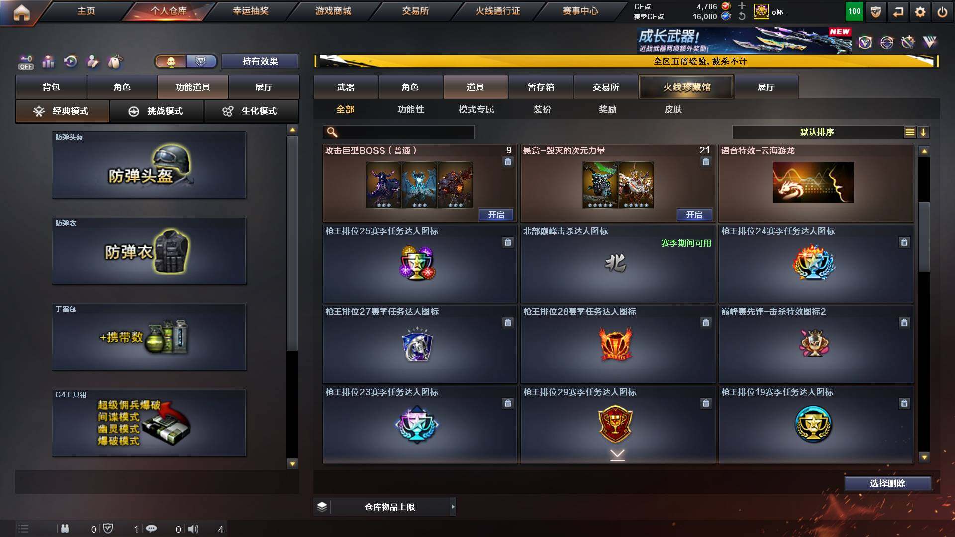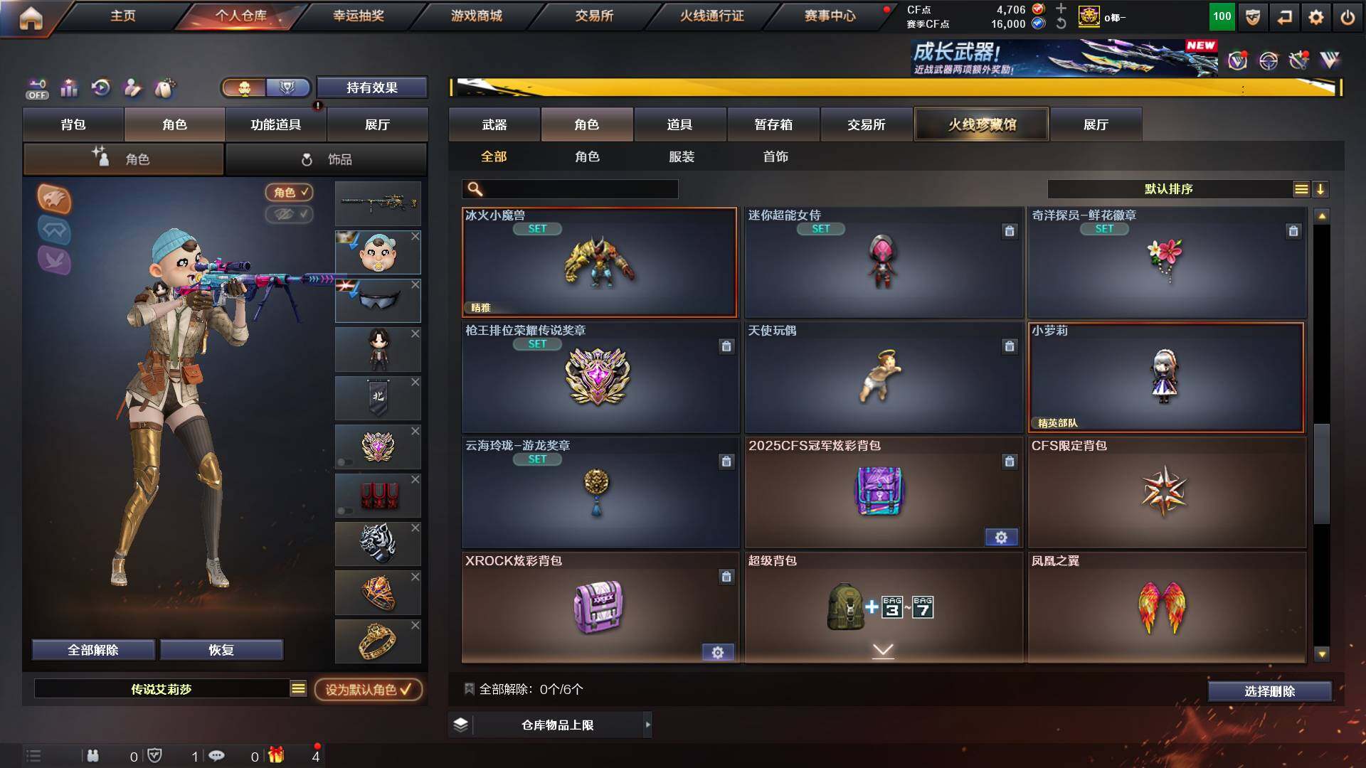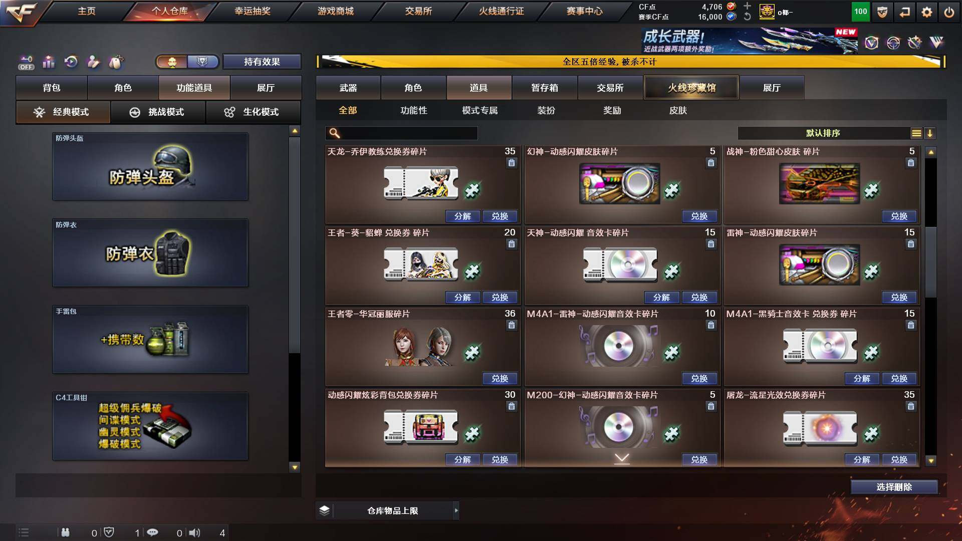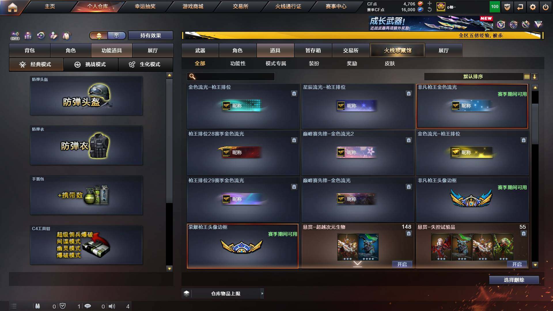 山东一区-48v-11王者-1炫金 【传说角色】:传说艾莉莎 【热门武器】:q03-金色蔷薇,m200-幻神,白虎-电玩蓝兔,毒蜂,m4a1-黑骑士3,羊驼玩偶,cop-白鲨,cop 357-幻灵,沙鹰-修罗3,炽芒蝶刃 【王者炫金武器】:炫金千变,王者之魄高爆手蕾2,王者之魄闪光丹2 【音效卡】:m4a1-黑龙音效卡,awm-昌龙-怀旧音效卡 【皮肤】:m200-幻神-黄忠皮肤,