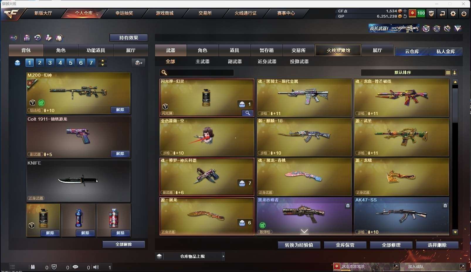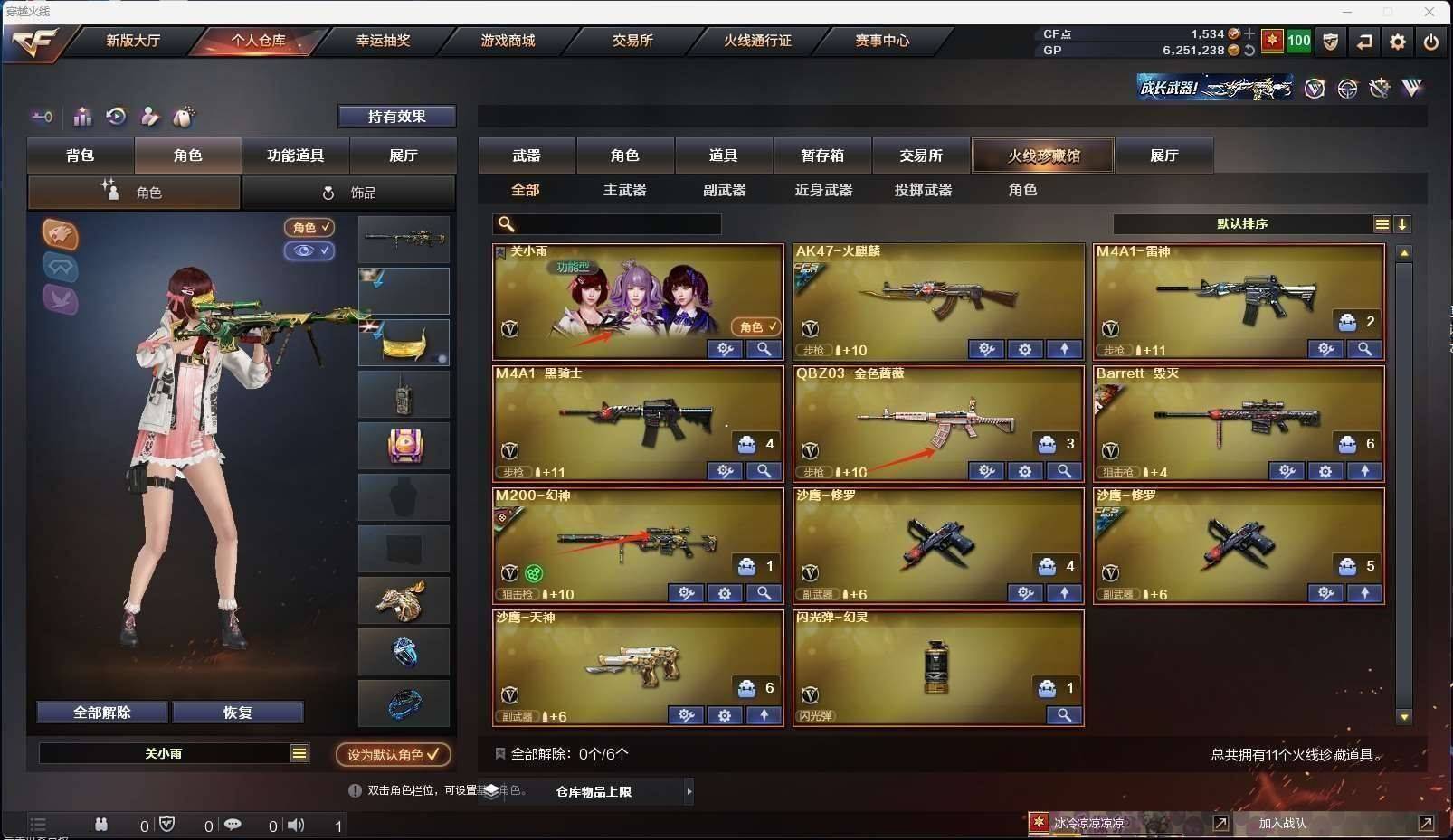 CFD523648号黑龙江区11v【m200幻神降龙皮肤】【qbz03金色蔷薇】【毁灭 雷神 火麒麟 黑骑士】——【修罗2 天神】——【热门武器/小人呛】【金色蔷薇空】——【源屠龙 源龙啸】 【角色】【关小雨】