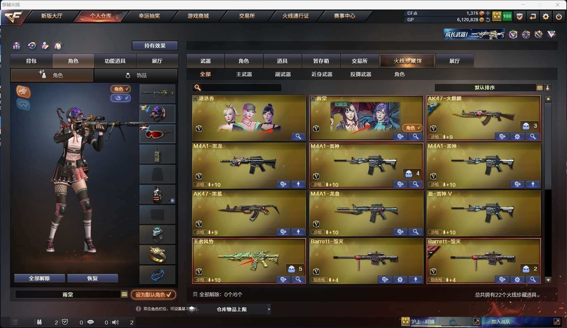 CFD523667号广东三区22v vip2【m200幻神】【王者风势】【火麒麟 雷神 毁灭 黑龙 黑鲨 龙血 烈龙 】——【麒麟刺 擎天竞技荣光】——【竞技荣光投掷武器套装2】——【角色】【雨棠 迷迭香】
