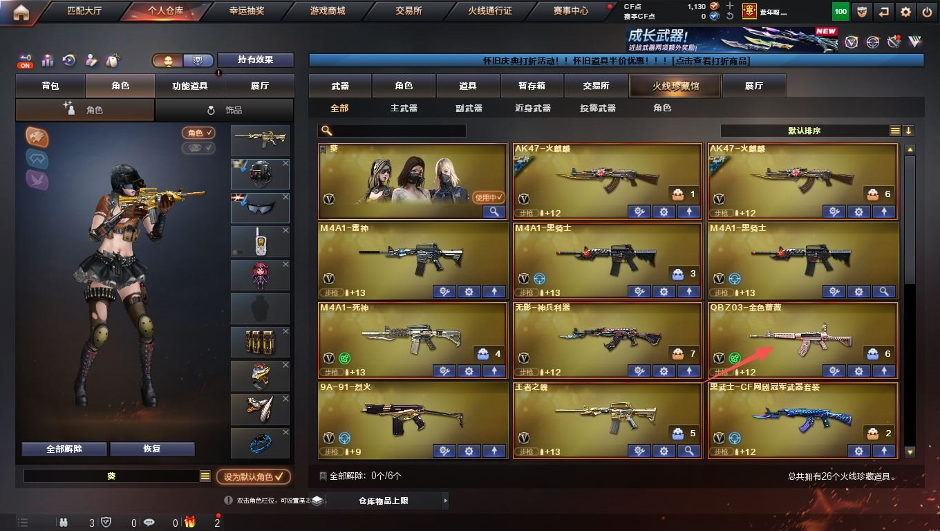 CFD523677号湖南二区 26v vip3 【王者风神】【qbz03金色蔷薇】【火麒麟 雷神 黑骑士 死神 无影神兵利器 烈火 黑武士网剧冠军 天龙 毁灭 极光 裁决】——【热门武器/小人枪】【火麒麟灵狐】【修罗 天神 天神网剧冠军】【屠龙 擎天 王者之啸 擎天网剧冠军】——【角色】【4防王者沙漠玫瑰】【葵】【初恋灵狐】