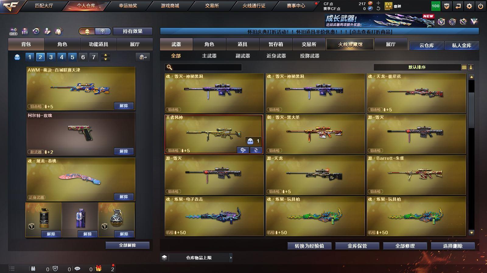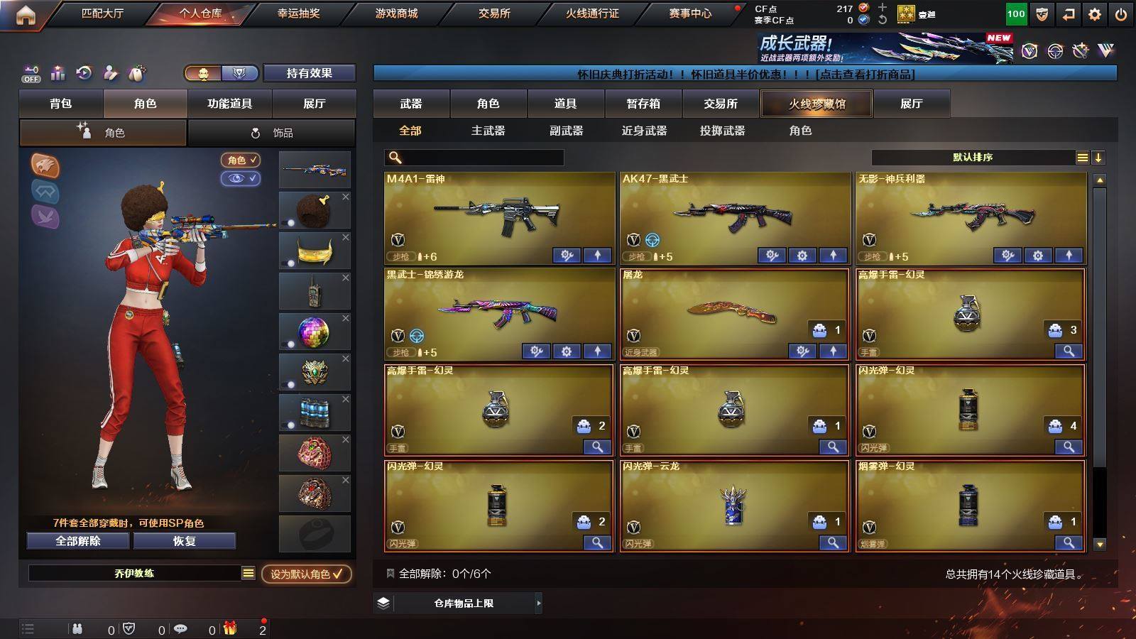 CFD523696号河南一区 vip6 14V 【王者风神】 【雷神 黑武士 无影神兵利器 黑武士锦绣游龙】——【屠龙】——【幻灵投掷武器套装3】——【热门武器/小人枪】【巴雷特碧霄极光】——【角色】【零纪元 乔伊教练 修道士】