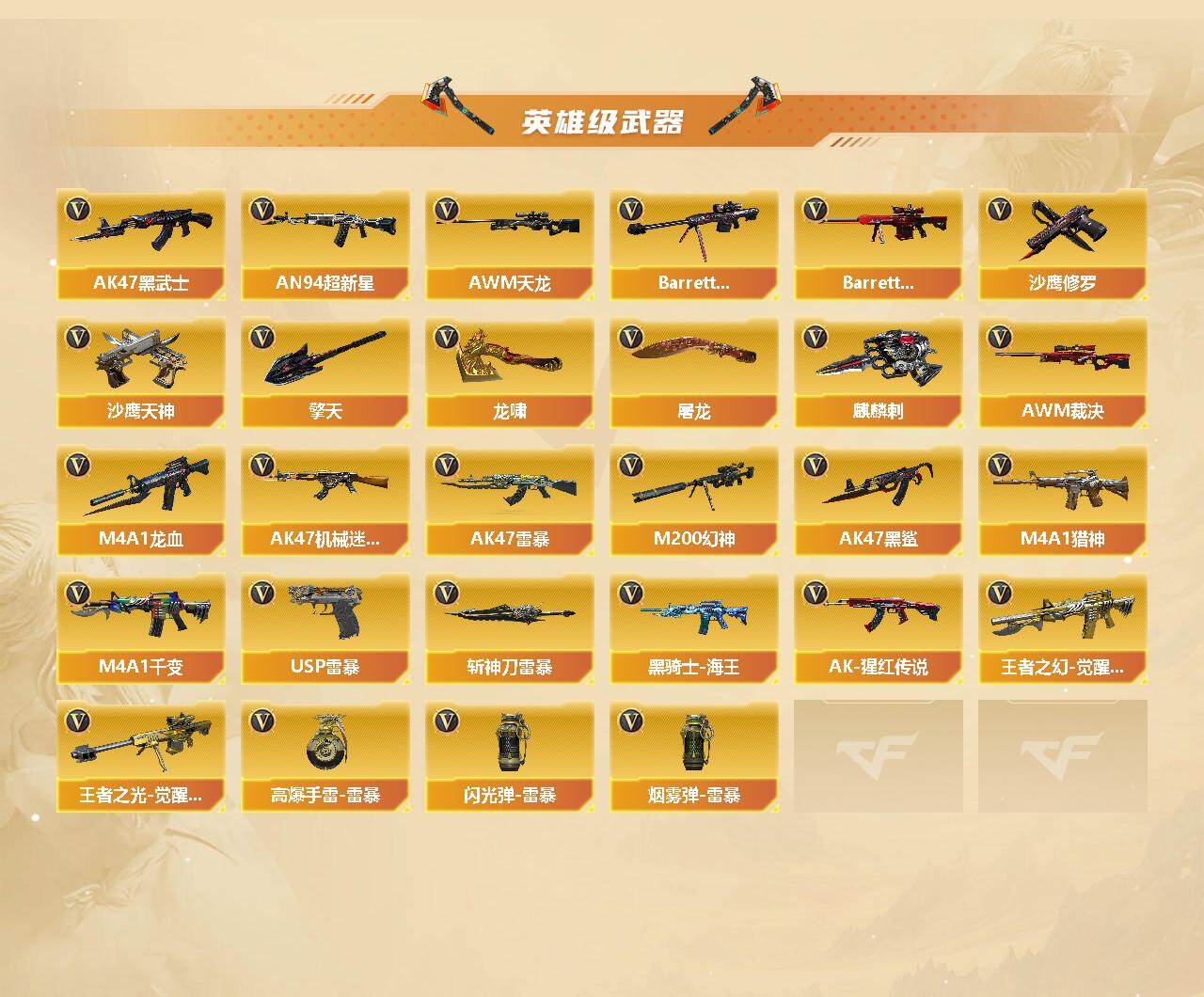 [16238023]山西一区-125v-7王者武器数-8炫金武器数 【热门武器】:q03-金色蔷薇3,m200-幻神,死亡之眼,m4a1-黑骑士,汤姆逊-烈龙6,rpk-盘龙3,加特林-炼狱2,斯泰尔-蝴蝶,cop-白鲨,usp-雷暴3,沙鹰-修罗6 【王者炫金武器】:王者之光,王者之怒,王者之力3,炫金雷神,炫金武士,炫金超新星,炫金毁灭4,炫金天龙 【音效卡】:ak47-火麒麟音效卡,m4a1-雷神音效卡,m4a1-黑骑士音效卡,barrett-毁灭音效卡 【皮肤】:幻神-动感闪耀 皮肤,雷神-暗月,雷神-荣耀之魄2,雷神-星空,火麒麟-雷神,火麒麟-冠军之心,火麒麟-轻羽皮肤,毁灭-荣耀之怒,毁灭耀金皮肤,毁灭-星空,毁灭-英雄计划 皮肤,m4a1-千变-孔明皮肤,黑龙-暗月,战神-粉色甜心皮肤,战神-紫绶金章皮肤2 【角色】:零,葵,魅影,王者-零,乔伊教练,空,暗夜-x,风暴女,娟娟,兰-海滩派对,0号玩家,零-水下丽影,灵狐者-黄金海岸,灵狐者-职业经理,龙儿-小淘气,潘多拉-x,潘多拉-甜心教官,青霞仙子,新娜塔莎,影武者-x,雅典娜 【人偶武器】:cop-白鲨,天龙-曼陀罗,斯泰尔-蝴蝶,cop-旗袍,迷你深渊冰龙 【暴走生化】:死亡之眼,超级对讲机 【挑战大师】:神圣爆裂者iii2,ak47-冰龙粉碎者,激光毁灭者iii3 【英雄级武器】:m4a1-千变,ak47-火麒麟3,ak47-麒麟,m4a1-黑龙,m4a1-雷神4,m4a1-黑骑士,ak47-无影,m4a1-死神5,ak47-黑武士3,an94-超新星,ak47-机械迷城2,ak47-黑鲨4,m4a1-龙血,ak47-雷暴,m4a1-玫瑰精灵2,q03-金色蔷薇3,m4a1-猎神,王者之幻-觉醒版,ak-47-猩红传说2,黑骑士-海王,awm-天龙,barrett-毁灭9,barrett-极光,awm-裁决,m200-幻神,王者之光-觉醒版,rpk-盘龙3,加特林-炼狱2,汤姆逊-烈龙6,沙鹰-修罗6,沙鹰-天神4,usp-雷暴3,屠龙3,龙啸2,擎天,麒麟刺2,斩神刀-雷暴2,高爆手蕾-雷暴9,闪光丹-雷暴9,盐雾蛋-雷暴9 【道具】:冰冰企鹅背包,战舰背包,炫彩背包,超级背包,妩媚妖姬,绿色巨人,灵魂忍者2,变异宝贝,妖姬,