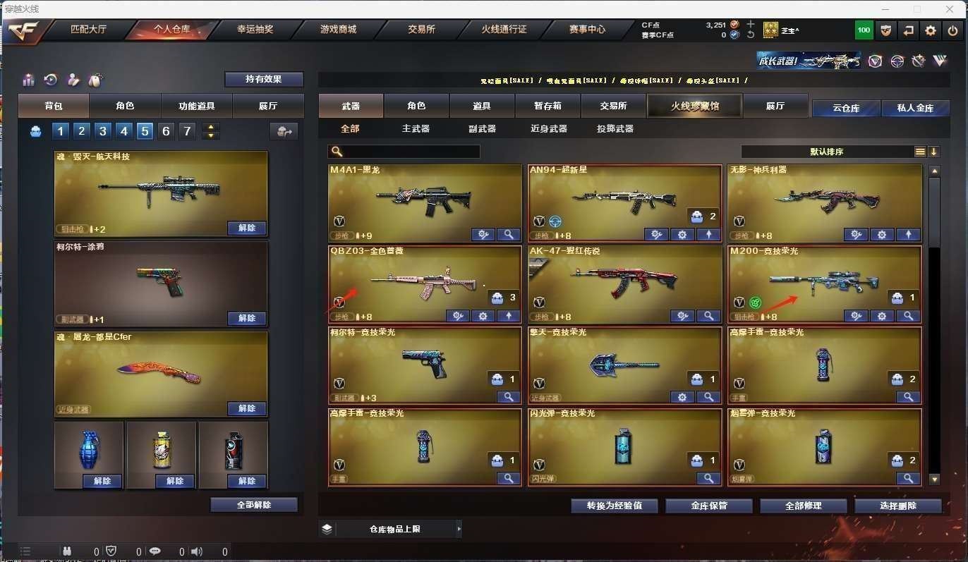 CFD526564号福建一区 13v vip6 【m200竞技荣光套装】【qbz03金色蔷薇呛娘皮肤】【黑龙 超新星 无影神兵利器 猩红传说】——【热门武器/小人呛】【裁决雪莉杨】【柯尔特竞技荣光】【擎天竞技荣光】——【竞技荣光投掷武器套装】——【暗夜审判 风暴女 嘉年华灵狐】