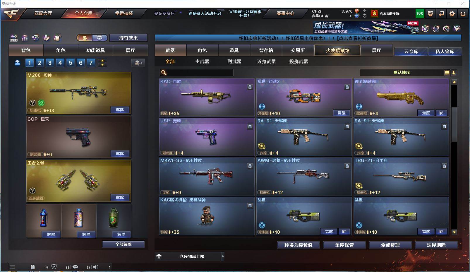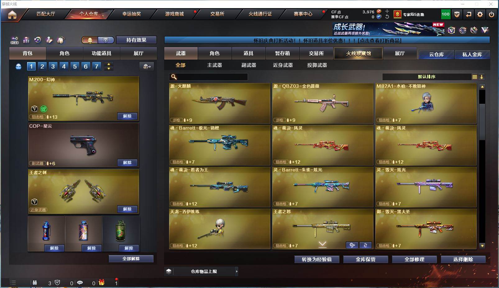 四川一区 vip4 18V 【M200幻神】【qbz03金色蔷薇】【雷神雷神音效卡】【王者之戮 王者之翼 王者之怒】【黑龙 黑武士锦绣游龙 机械迷城穹宇 毁灭 裁决 巴雷特金色蔷薇】——【沙鹰修罗 沙鹰天神】——【擎天 王者之击 王者之刺】——【热门武器/小人枪】【M4A1赤狱骑士 AK47竞魂无影 昌龙 巴雷特碧霄极光 M4A1胜者为王 火麒麟零纪元 水枪不败狙神 天龙乔伊教练 炫金毁灭】——【角色】【瞳 樱 不败狙神 零纪元 战地猎狐】