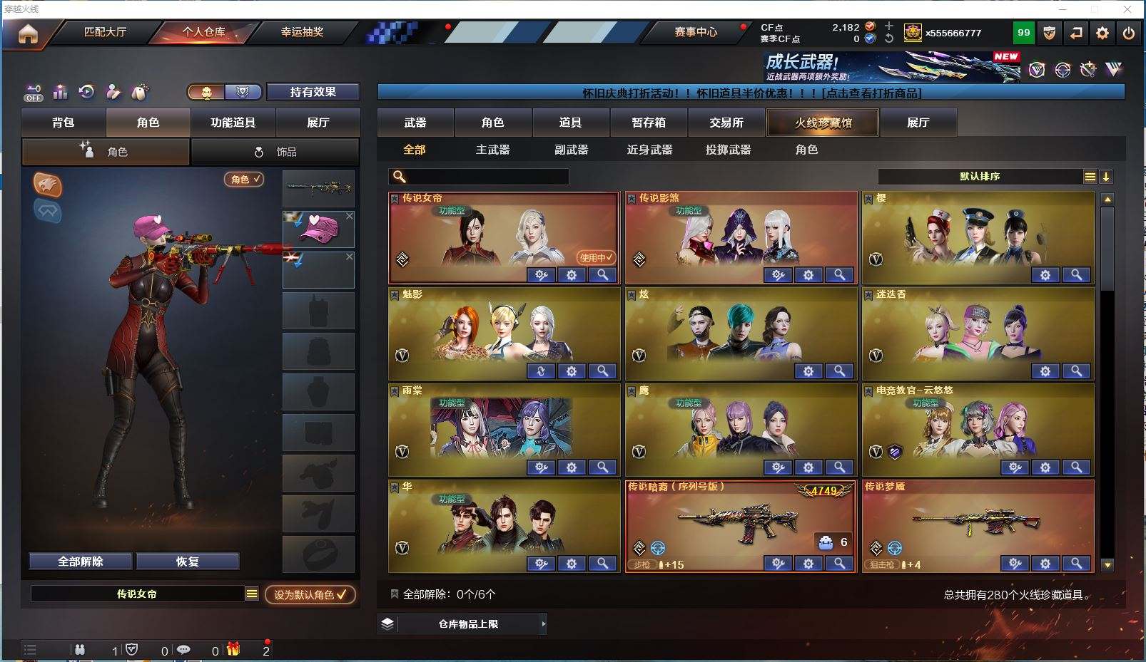 四川一区 vip6 280V 【幻神三件套!!!】【白虎三件套!!!】【传说武器传说角色!!!】【序列号版传说武器!!!】【M200幻神幻神音效卡宠儿皮肤CFPLS17冠军皮肤N9皮肤黄忠皮肤usp雷暴炽芒蝶刃4防传说女帝】【98k星神冠军之特冠军之刃传说影煞王者星霆】【传说暗裔(序列号4749)】【传说梦魇】【8盘龙6烈龙5炼狱斯泰尔蝴蝶】【白虎白虎音效卡冠军之虎皮肤】【qbz03金色蔷薇】【竞技荣光套装】【雷霆套装】【堕天神套】【云龙套装】【王者之心 王者之魄 王者之势 王者蔷薇 王者之决 王者之力 王者之怒】【火麒麟冠军之心皮肤】【雷神雷神音效卡荣耀之魄皮肤CFPlS14冠军皮肤】【6黑骑士黑骑士音效卡】【毁灭毁灭音效卡荣耀之怒皮肤CFPLS15冠军皮肤】【极光极光音效卡】【千变 死神 黑武士 超新星 武圣 黑鲨 无影神兵利器 无影神兵利器 黑武士锦绣游龙 超新星热带奇洋 9A91烈火 猩红传说 战士 战神 身先士卒 常胜将军 白虎电玩蓝兔 天龙 裁决 巴雷特金色蔷薇 AA2雷霆】——【冠军之特 沙鹰修罗6沙鹰天神 武圣 cop357雷霆 usp雷暴 cop堕天神 破空枪刃夜魔 柯尔特竞技荣光 cop357云龙 修罗古蛇迷踪 王者之魂】——【冠军之刃 炽芒蝶刃 屠龙 龙啸 擎天 麒麟刺 尼泊尔雷霆 斩神刀雷暴 麒麟刺堕天神 龙啸堕天神 擎天竞技荣光 云龙扇 龙啸热带奇洋 王者之峰 王者之啸 王者之击 擎天cf网剧冠军武器套装 王者云击】——【雷霆投掷武器套装7 雷暴投掷武器套装4 堕天神投掷武器套装7 竞技荣光投掷武器套装7 云龙投掷武器套装7】——【热门武器/小人枪】【M4A1赤狱骑士 朱雀蛇隐宗 雷神精英刀锋 炫金黑龙 炫金雷神 炫金骑士 死亡之眼】——【角色】【4防(传说女帝 传说影煞 云悠悠 鹰 王者春 王者葵貂蝉 王者零国色天香 王者空 王者沙漠玫瑰 王者玲珑小乔)】【华 迷迭香 樱 雨棠 炫 魅影 零纪元】