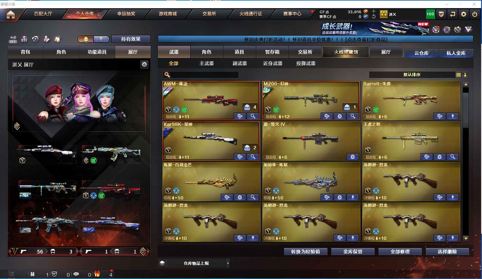 m14【找回包赔】【河北一区/56V/vip1/2传说】【M200-幻神/幻神-冠军之幻】【Kar98K-星神/星神-璀璨皮肤】【王者白虎】【QBZ-03-王者蔷薇】【M4A1-雷神/雷神-暗月/雷神-能量核心】【Barrett-毁灭2/毁灭-暗月】【AK47-火麒麟/火麒麟-CFSTAR3】【M4A1-黑骑士/M4A1-黑骑士音效卡/黑骑士耀金皮肤】【M4A1-黑龙】【AK47-无影/无影-能量核心】【AK47-黑武士】【AWM-天龙2/天龙-CFSTAR/天龙-秘银】【AWM-裁决/AWM-裁决音效卡】【M4A1-死神】【汤姆逊-烈龙4】【加特林-炼狱】【死亡之眼】【沙鹰-修罗/修罗-CFSTAR】【沙鹰-天神】【麒麟刺4】【擎天2】【屠龙2/屠龙-动感闪耀 音效卡】【荣耀世冠-龙啸/龙啸】【王者潘多拉/乔伊教练/超能特工/荆棘玫瑰/雪莉杨/蜀雪/幻影/堕天使/复仇者】【M4A1-龙血/M4A1-猎神/M4A1-武圣】【AK-47-猩红传说】【AK47-黑鲨/天启-暗月】【AN94-超新星2】【Barrett-朱雀】【Colt1911-小故障/新USP-枪王排位奖励2】【斩神刀】【机甲撕裂者III/KAC-圣炎切割者III】【斯泰尔-巧克力】【猫猫手套】【王者芳薇】【高爆手雷-雷霆/闪光弹-雷霆/烟雾弹-雷霆】【闪光弹-幻灵】【闪光弹-雷暴王者】【炫金火麒麟/炫金千变/炫金毁灭/炫金修罗】【运动护目镜/防弹头盔3/防弹衣3/C4工具钳3/手雷包3/防化服3】