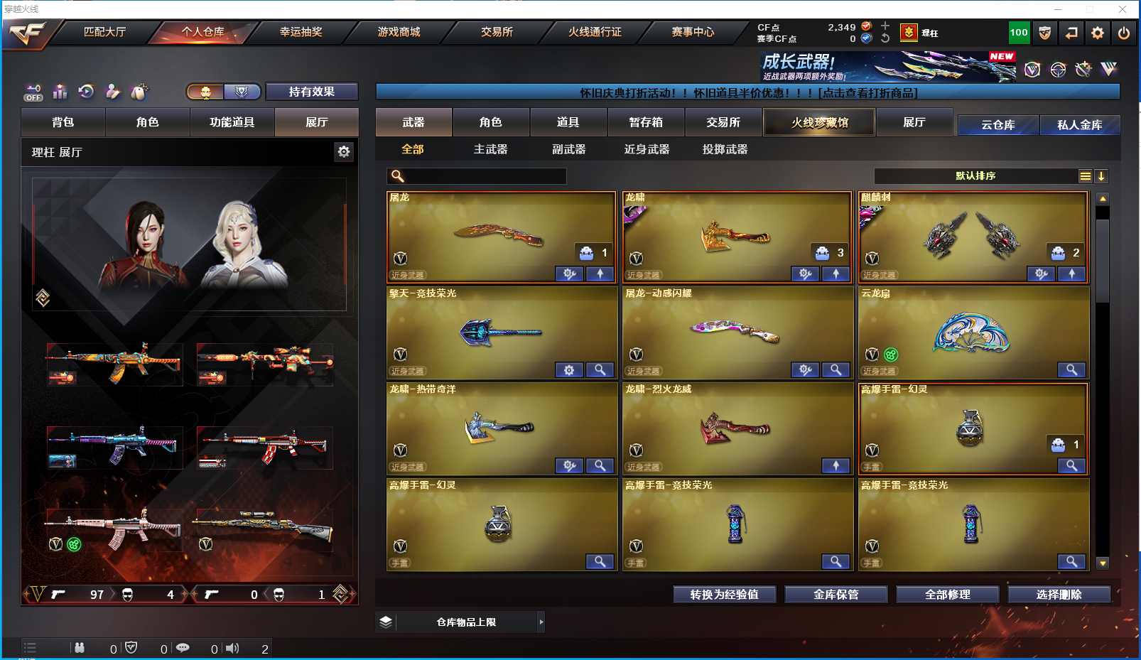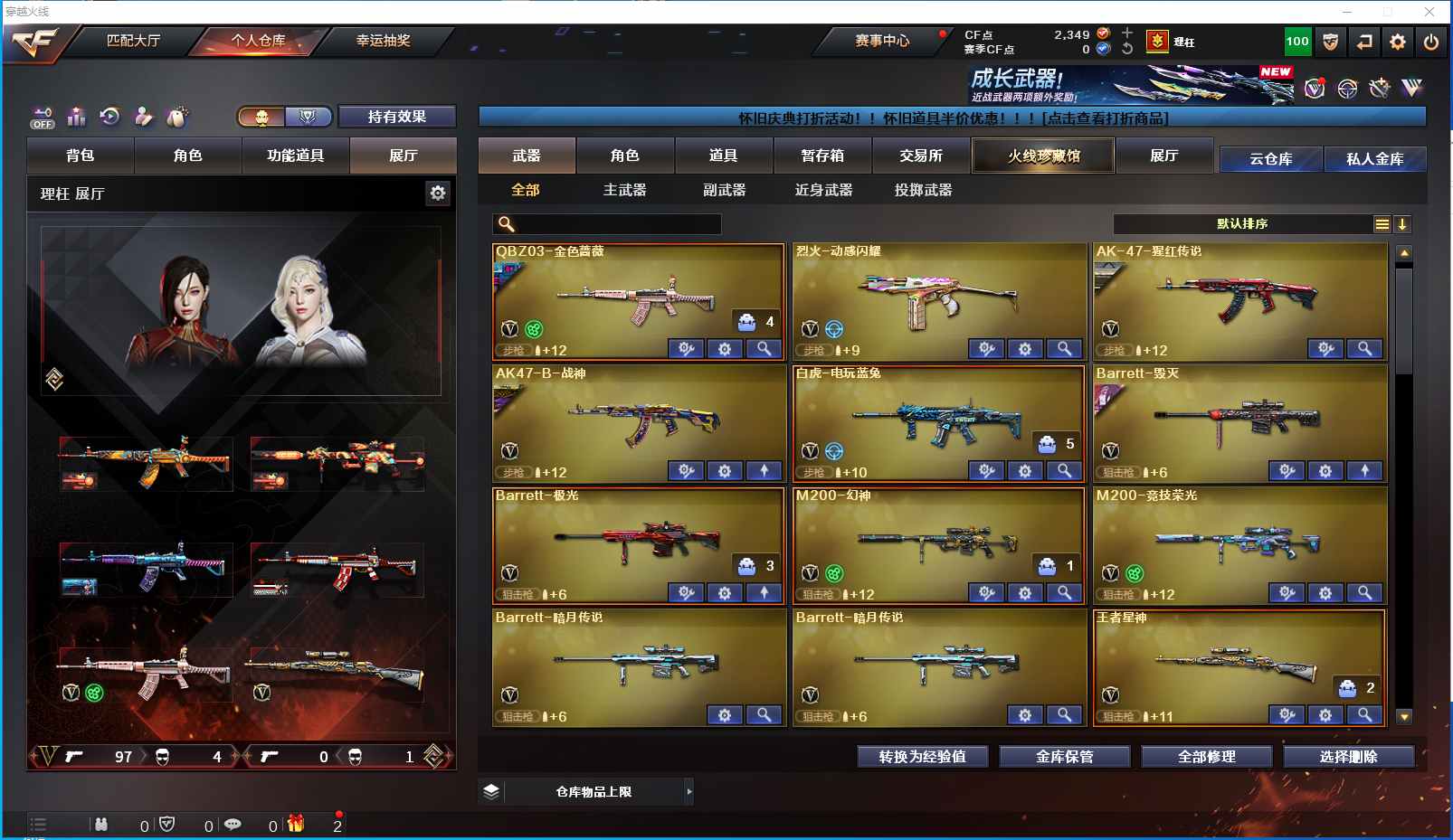 m10【找回包赔】【云南一区/91V/vip1/1传说】【传说女帝】【鹰/华】【竞技荣光套】【M200-幻神/幻神-纸灯龙皮肤】【M200-竞技荣光】【王者星神】【QBZ03-云龙2】【柯尔特-竞技荣光/USP-雷暴/USP-神工天巧】【QBZ03-金色蔷薇/QBZ03-荣耀世冠白鲨/QBZ03-AG-CFPLS19冠军/金色蔷薇-纸灯龙皮肤】【QBZ03-天罚】【M4A1-雷神2/雷神-R.LGD-CFPLS18冠军/雷神-维纳斯皮肤/雷神-暗月】【COP 357-幻灵/COP 357-云龙】【Barrett-毁灭/毁灭-直播专属/毁灭-青帝皮肤】【AK47-火麒麟/火麒麟-CFSTAR/火麒麟-心动糖果/火麒麟-雷神】【M4A1-黑骑士/黑骑士-冠军之势】【黑龙-能量核心】【无影-神兵利器】【AK47-黑武士/黑武士-锦绣游龙/黑武士-典韦皮肤】【Barrett-极光】【炼狱-悦蓝】【沙鹰-修罗3/修罗-CFSTAR2】【沙鹰-天神/天神-动感闪耀】【云龙扇】【麒麟刺/麒麟刺-萌杀皮肤】【擎天-竞技荣光】【屠龙/屠龙-动感闪耀】【龙啸/龙啸-烈火龙威】【王者沙漠玫瑰/电竞教官-云悠悠/女主播/暗夜-X/木兰/奇洋探员/乔伊教练/兔囡囡/超能特工/灵狐-花神/萌儿/麻雀/青霞仙子/妲己/蜀雪/潘多拉-X/斯沃特-X/救世主-X/幻影/复仇者】【白虎-电玩蓝兔/Scar Light-像素/AK47-B-战神/AK-47-猩红传说】【超新星-热带奇洋】【Barrett-暗月传说2】【Colt1911-小故障2/Colt 1911-大黄蜂2/柯尔特-萌杀/COP 357-青龙/新USP-枪王排位奖励3】【龙啸-热带奇洋/金刚伞-电玩红兔/迷你深渊冰龙】【神圣爆裂者-末日III/激光毁灭者III-白马银枪/冰龙粉碎者-白马银枪】【斯泰尔-巧克力/轻型军用手斧-镜】【猫猫手套/王者M4A1-萌萌金发刀锋/黄金迷你深渊冰龙/黄金迷你裂空之翼/迷你裂空之翼/夺魂2/MK5-炽火炎龙】【高爆手雷-竞技荣光5/闪光弹-竞技荣光6/烟雾弹-竞技荣光5】【高爆手雷-云龙9/闪光弹-云龙8/烟雾弹-云龙10】【烟雾弹-神工天巧2】【高爆手雷-幻灵2/闪光弹-幻灵/烟雾弹-幻灵】【手雷-热带奇洋】【炫金骑士】【女战神梧桐语音包】【超级护目镜/烟雾保护头盔/闪光护目镜/超级对讲机/超级背包/炫彩背包/防弹头盔2/防弹衣2/C4工具钳2/手雷包2/防化服2】