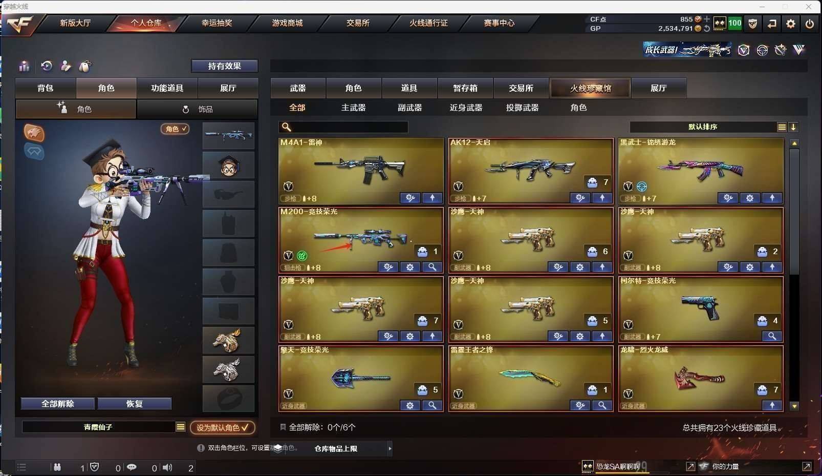 CFD527138号福建一区23v【m200竞技荣光套装】【雷神 天启 黑武士锦绣游龙】——【柯尔特竞技荣光 天神4】——【雷霆王者之锋 擎天竞技荣光 龙啸烈火龙威】——【竞技荣光投掷武器套装雷霆王者投掷武器套装】——【角色】【4防王者影豹】