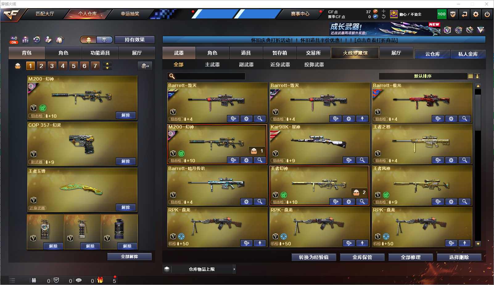077-CF4491 【广西一区】【可二次】【可排位】 158v 14王者 【重要套装】幻灵套装 【重要角色】葵/樱/影豹/兰-巾帼英雄/隼/王者之瞳/王者玲珑-小乔/王者潘多拉/修道士/铁扇公主/奇洋探员/乔伊教练/女主播/幽/云海玲珑/兰-海滩派对 【英雄武器】M200-幻神/王者幻神-觉醒版/Barrett-毁灭2/Barrett-极光/Barrett-暗月传说/王者之怒-觉醒版/Kar98K-星神/AWM-天龙3/M4A1-神工天巧/M4A1-雷神2/M4A1-死神/M4A1-黑龙/M4A1-黑骑士2/黑骑士-海王3/M4A1-武圣2/M4A1-幻灵/M4A1-猎神/M4A1-玫瑰精灵/王者之势-觉醒版/白虎之魄-觉醒版/M14EBR-玄武/AK12-天启/AK47-火麒麟4/AK47-无影/无影-神兵利器/AK47-黑鲨/AK47-黑武士/AK-47-猩红传说3/AK47-机械迷城3/AK47-B-身先士卒/AK47-B-常胜将军/AK47-B-战士/AN94-超新星/QBZ03-天罚/QBZ03-金色蔷薇/QBZ-03-王者蔷薇-觉醒版/烈火-动感闪耀/9A91-烈火/RPK-盘龙3/汤姆逊-烈龙7/加特林-炼狱4/炼狱-悦蓝-觉醒版/COP 357-幻灵2/天神-动感闪耀/沙鹰-天神4/沙鹰-修罗2/柯尔特-冠军之特/USP-神工天巧/麒麟刺/王者之刺-觉醒版/龙啸2/擎天/屠龙-动感闪耀/屠龙4/幻灵之锋/唐刀-神工天巧3/手雷-动感闪耀/高爆手雷-神工天巧8/高爆手雷-幻灵9/烟雾弹-神工天巧8/烟雾弹-幻灵7/闪光弹-神工天巧11/闪光弹-幻灵7/机械迷城-穹宇/王者芳薇-觉醒版/王者风神-觉醒版/烈龙-云海游龙/屠龙-电竞之星/擎天-云海游龙/龙啸-烈火龙威/手雷-热带奇洋/手雷-云海游龙 【王者武器】王者凤吟/王者之翼/王者之力/炼狱-悦蓝/王者玉锋 【小人枪】M4A1-雷神-精英刀锋/雷神-小红/天龙-曼陀罗/AWM-灵狐-15周年嘉年华/炼狱-迷你小钢/斯泰尔-枪娘暗刃/COP-旗袍/迷你深渊冰龙2/迷你救赎猎手/魔能飞环-曼陀罗/迷你牛牛/冰火魔兽 【重要武器皮肤】M200-幻神-N9-2022MVP/幻神-宠儿-2021MVP/幻神-冠军之幻/星神-枪娘默 皮肤/巴雷特-毁灭-CFPL冠军/毁灭耀金皮肤/毁灭-墨兰皮肤/毁灭-暗月/极光-能量核心/天龙-CFSTAR/天龙-秘银/天龙-能量核心/AWM-裁决-百城联赛天津皮肤/火麒麟-CFSTAR/火麒麟-平天大圣/火麒麟-心动糖果/火麒麟-盘古/无影-暗月/无影-能量核心/AK47-B-常胜将军-刘备/AK47-B-常胜将军-孙权/AK47-B-常胜将军-曹操/AK-47-雷神/雷神-航星皮肤/雷神-耀金皮肤/雷神-能量核心/黑骑士耀金皮肤/黑骑士-暗月/黑龙-能量核心/死神-秘银/天启-暗月/战神-紫绶金章皮肤/修罗-能量核心/天神-暗月 【重要音效卡】M4A1-黑骑士音效卡/Barrett-毁灭音效卡/Barrett-极光音效卡 等等装备和皮肤~ 截图展示段位不代表实际段位,如赛季更新等不可抗拒因素发生变化、时限道具不保证所剩时间,其余道具看截图或咨询客服 【小述账号 安全无忧】