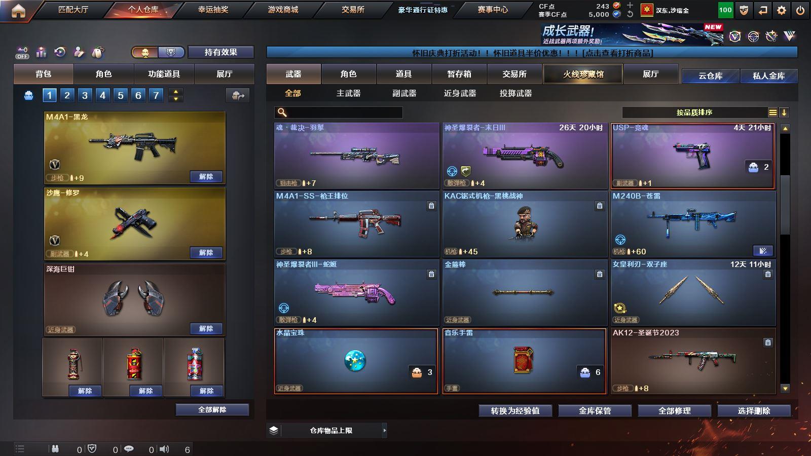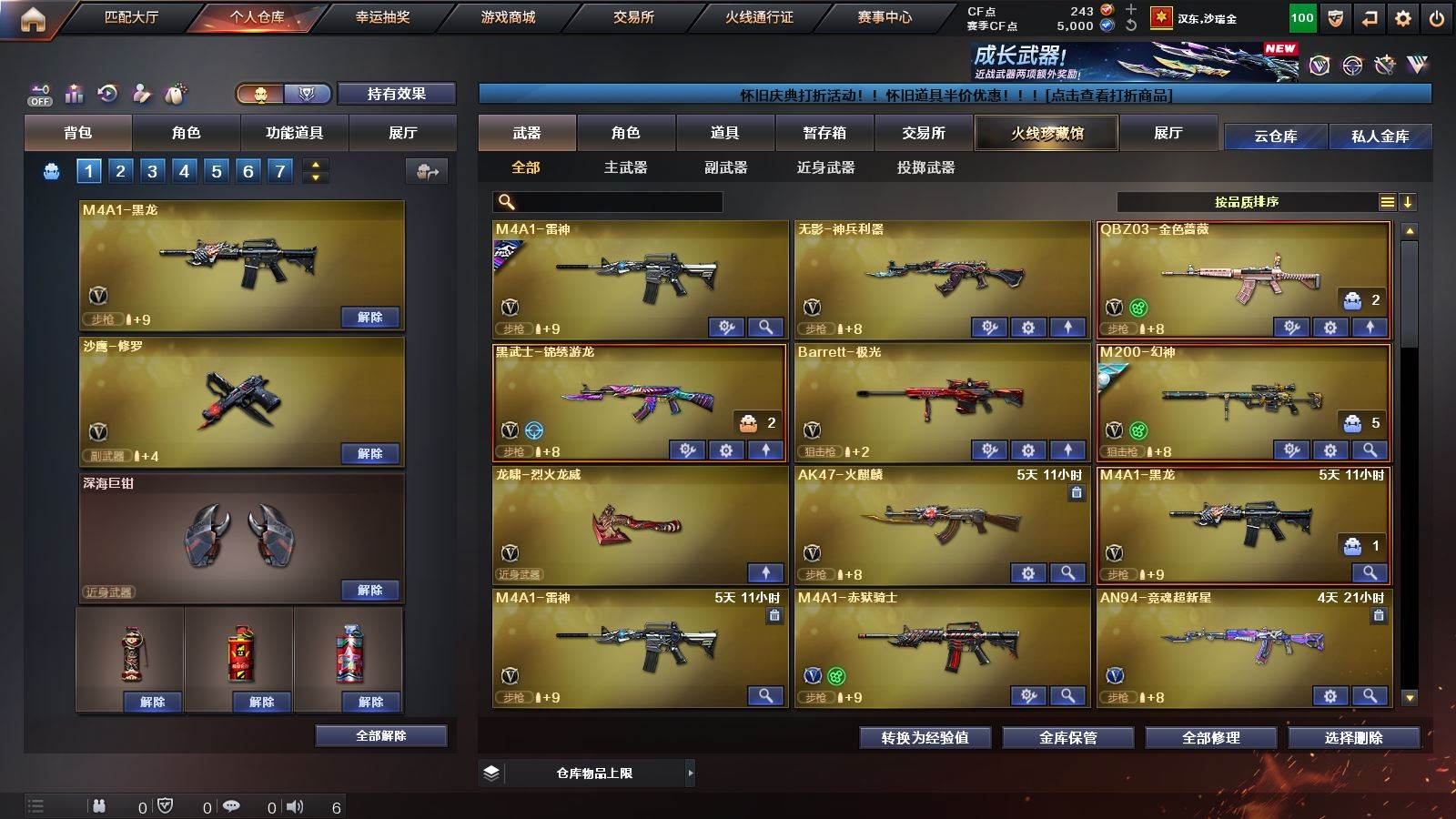 CFD527744号广东三区 7V 【M200幻神荣耀世冠白鲨2023皮肤电流骇客皮肤】【qbz03金色蔷薇】【雷神CFPLS14冠军皮肤】【无影神兵利器 黑武士锦绣游龙 极光】——【龙啸烈火龙威】——【热门武器/小人枪】【copo白鲨 黑桃战神】——【角色】【4防王者魅影】【战地猎狐】