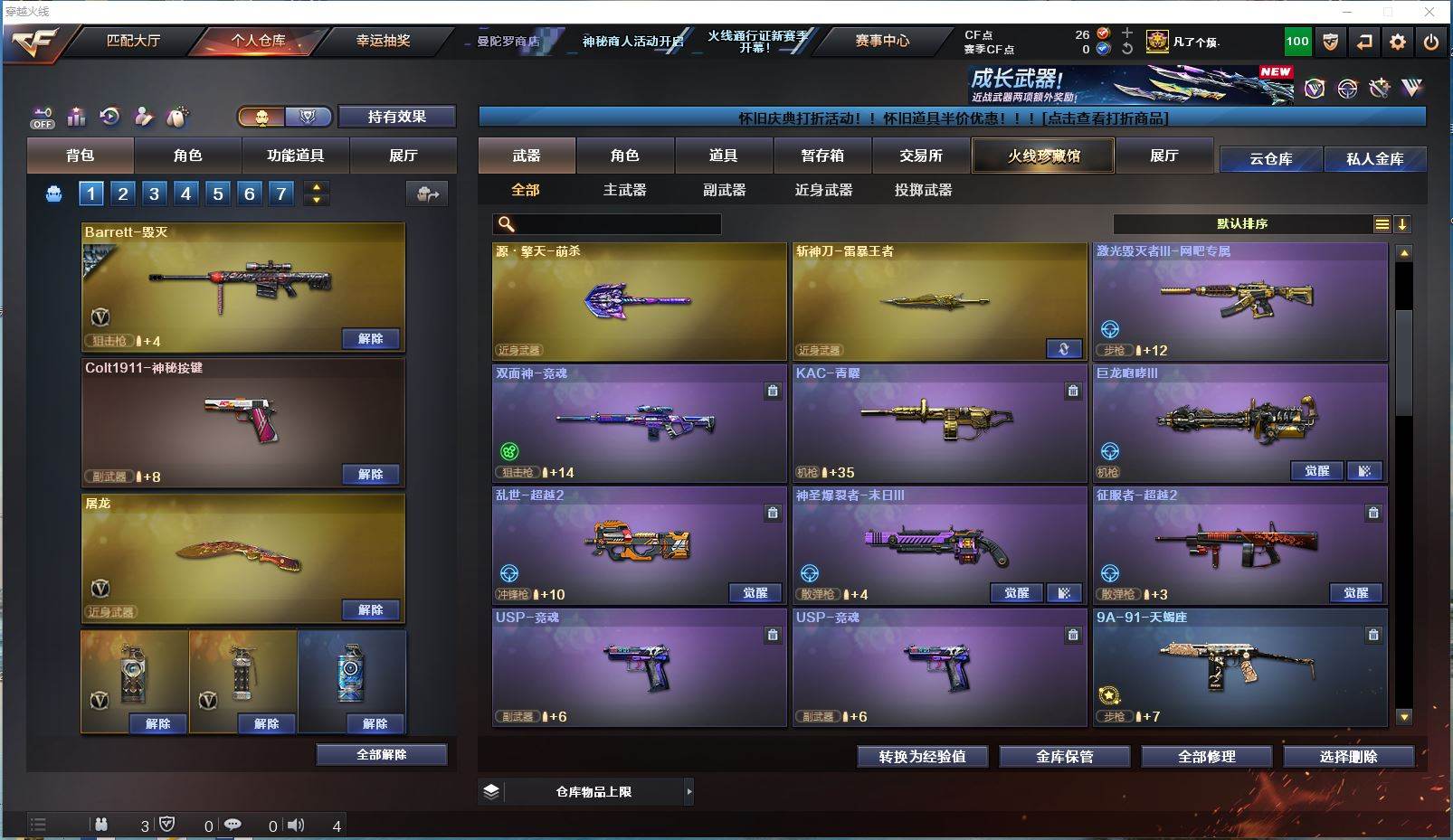 北京一区 vip6 75V 【M200幻神黄忠皮肤usp珊瑚】【5烈龙5炼狱2盘龙】【qbz03金色蔷薇】【王者之心 王者之怒】【火麒麟火麒麟音效卡冠军之心皮肤】【雷神雷神音效卡荣耀之魄皮肤】【毁灭毁灭音效卡】【千变 黑龙 黑骑士 无影 死神 黑鲨 qbz03独角III 朱雀电竞之星 玫瑰精灵 9A91烈火 猩红传说 战神 极光 巴雷特朱雀 巴雷特金色蔷薇 AA12雷霆】——【沙鹰修罗4 沙鹰天神 柯尔特百战金芒】——【屠龙 龙啸 擎天 麒麟刺 斩神刀雷暴 麒麟刺百战金芒 屠龙电竞之星 王者之击】——【雷暴投掷武器套装 神工天巧投掷武器套装 雷暴王者投掷武器套】——【AK47竞魂无影 巴雷特碧霄极光 雷神精英刀锋 雷神小红 水枪不败狙神 】——【角色】【4防(王者春 王者魅影)】【葵 不败狙神 零纪元】