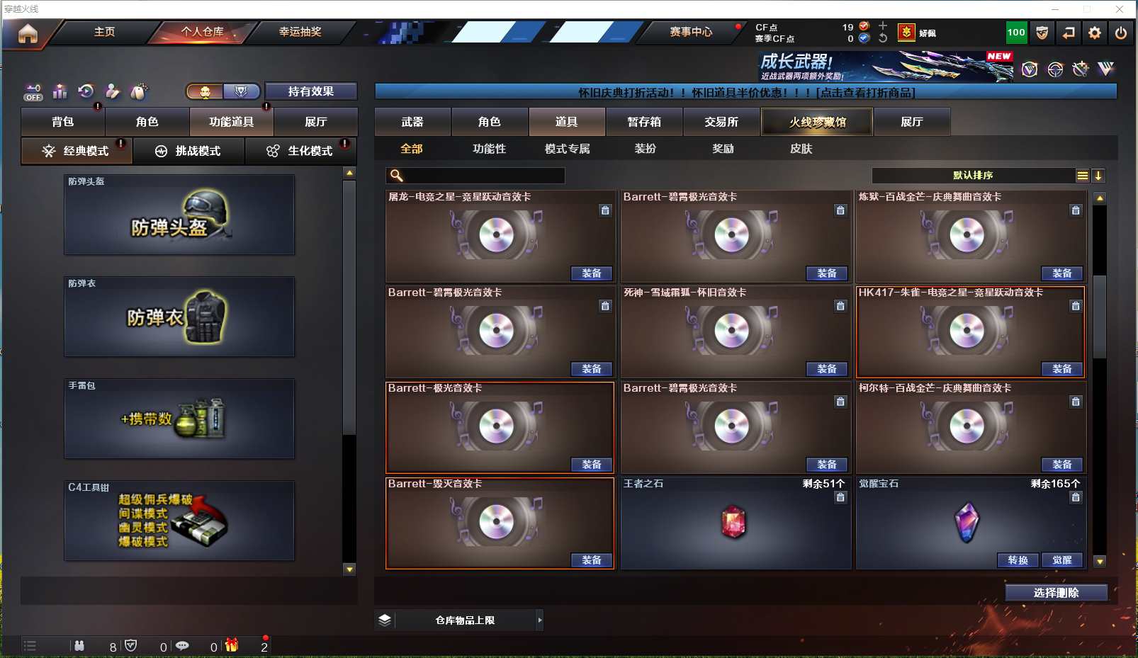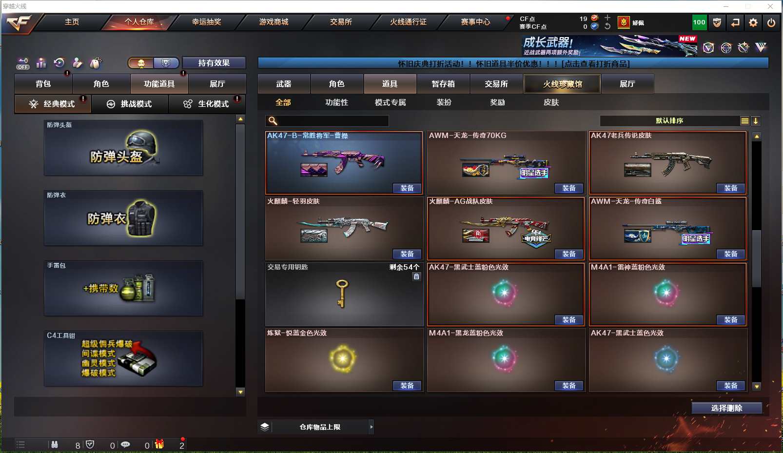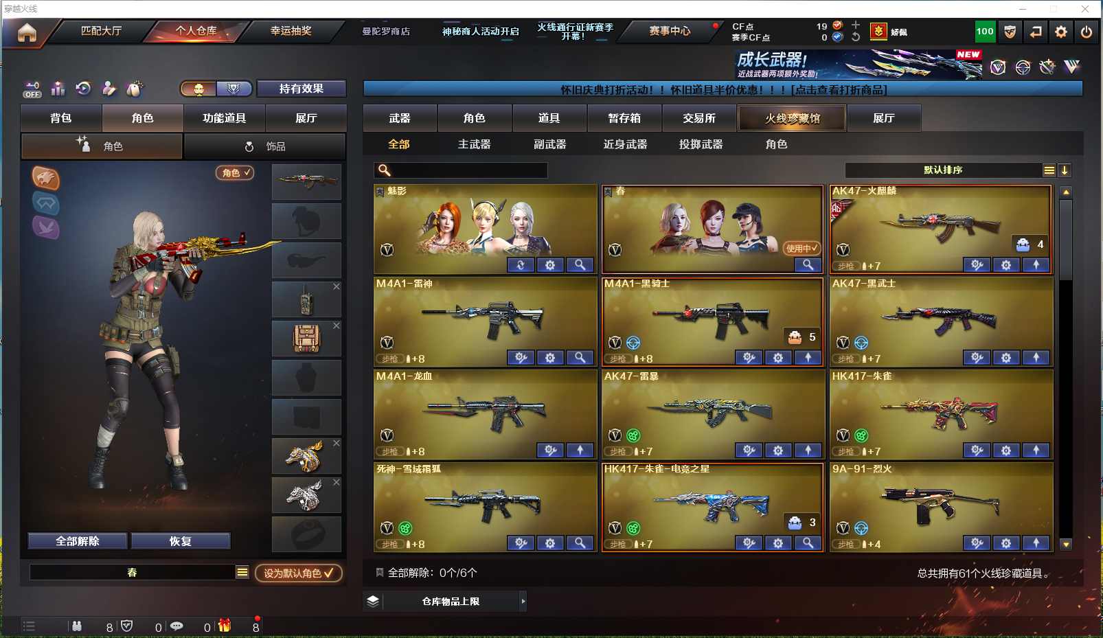 【安徽一区】【可二次实名】【可排位】【新锐1】【CF点19】【V武器数66】【斯泰尔-蝴蝶】【雷暴套装X7套】【M200-幻神】【AK47-雷暴】【HK417-朱雀】【USP-雷暴】【加特林-炼狱】【RPK-盘龙】【炼狱-百战金芒】【汤姆逊-烈龙】【斯泰尔-蝴蝶】【春】【乔伊教练】【王者-瞳-闭月羞花】【王者玲珑-小乔】【王者零-华冠丽服】【魅影】【M4A1-雷神】【AK47-火麒麟】【火麒麟-轻羽皮肤】【M4A1-黑骑士】【黑骑士-摸金校尉】【Barrett-毁灭】【Barrett-毁灭音效卡】