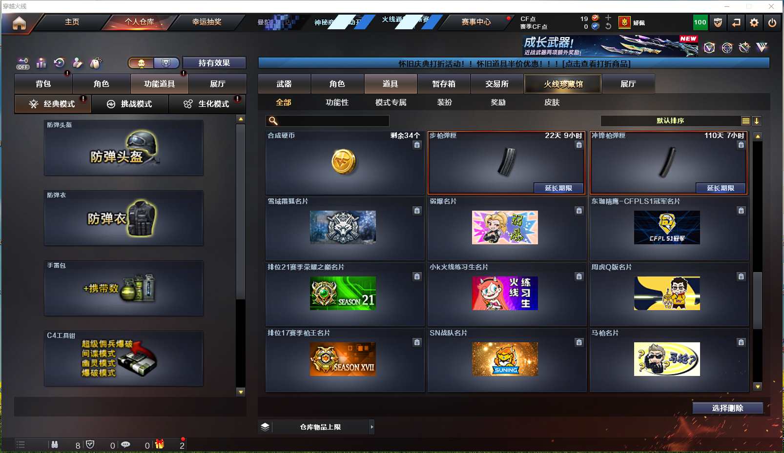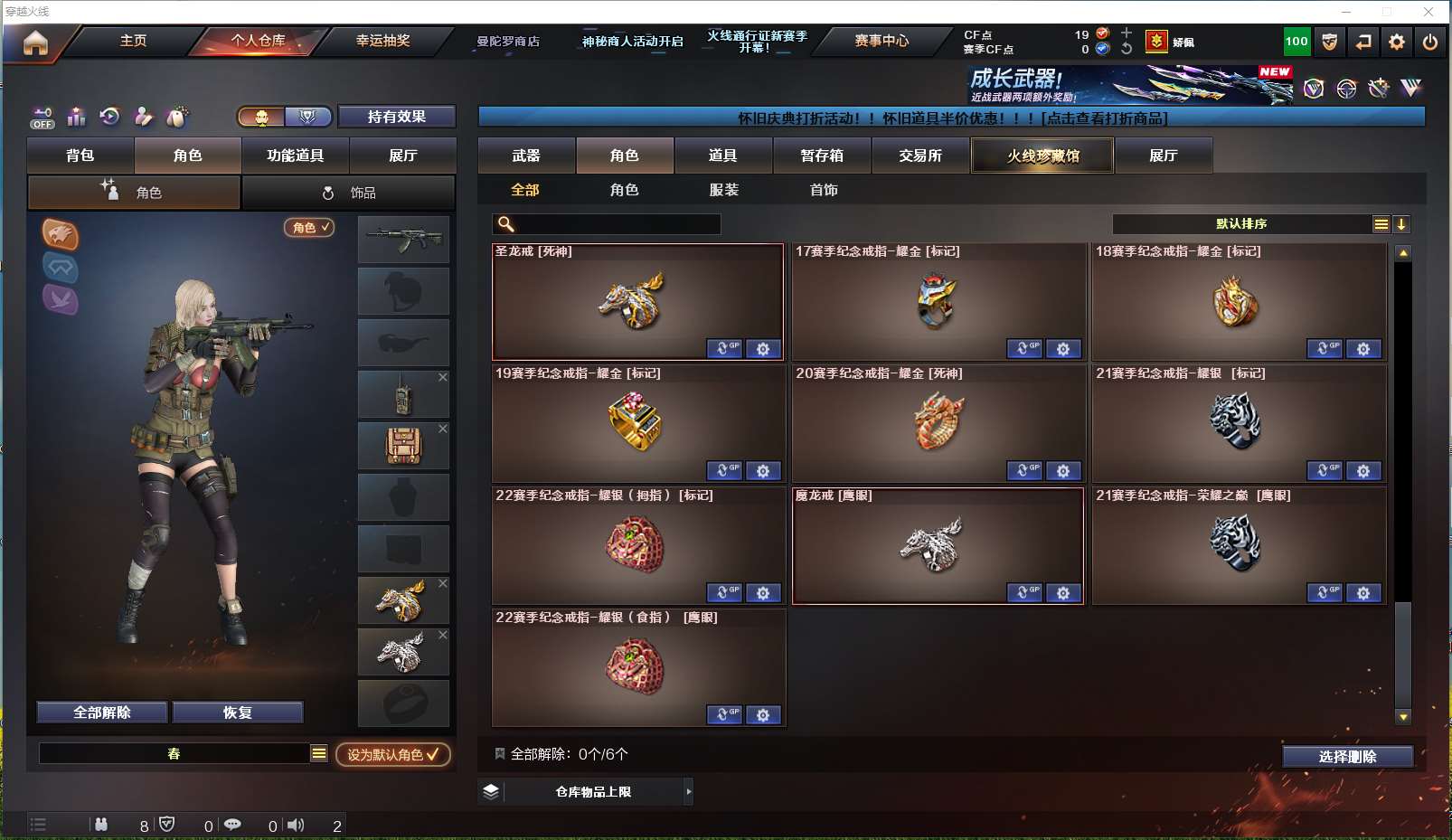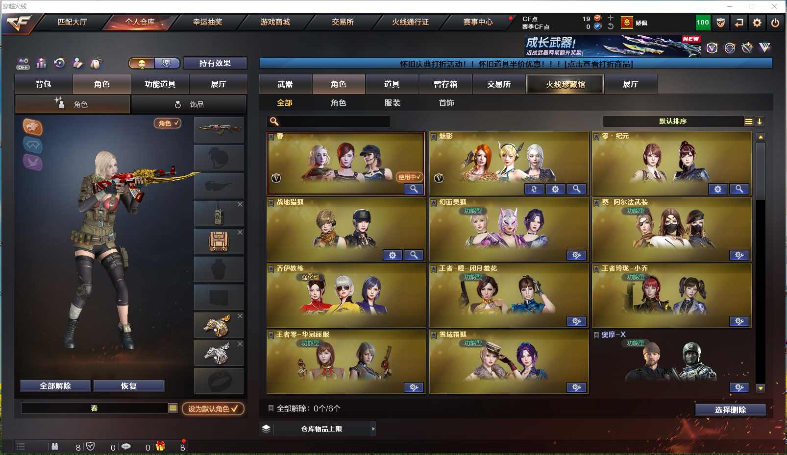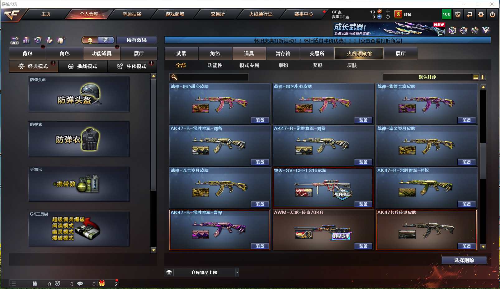 【安徽一区】【可二次实名】【可排位】【新锐1】【CF点19】【V武器数66】【斯泰尔-蝴蝶】【雷暴套装X7套】【M200-幻神】【AK47-雷暴】【HK417-朱雀】【USP-雷暴】【加特林-炼狱】【RPK-盘龙】【炼狱-百战金芒】【汤姆逊-烈龙】【斯泰尔-蝴蝶】【春】【乔伊教练】【王者-瞳-闭月羞花】【王者玲珑-小乔】【王者零-华冠丽服】【魅影】【M4A1-雷神】【AK47-火麒麟】【火麒麟-轻羽皮肤】【M4A1-黑骑士】【黑骑士-摸金校尉】【Barrett-毁灭】【Barrett-毁灭音效卡】