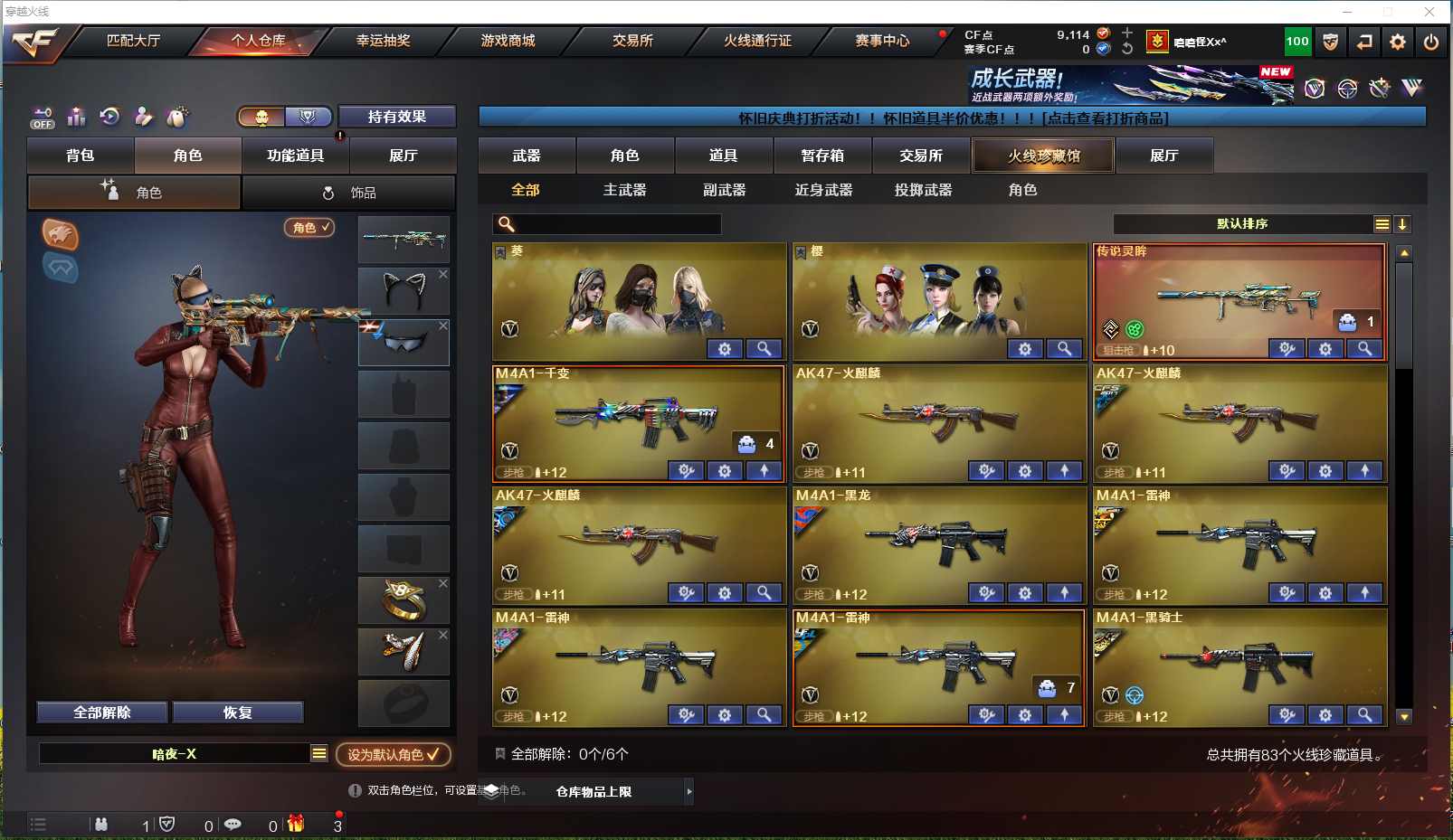 【湖南一区】【可二次实名】【可排位】【新锐1】【会员等级VIP5】【CF点9114】【V武器数83】【死亡之眼】【竞技荣光套装X4套】【传说灵眸】【M200-幻神】【AWM-裁决】【QBZ03-金色蔷薇】【金色蔷薇-纸灯龙皮肤】【M4A1-青龙】【加特林-炼狱】【RPK-盘龙】【炼狱-百战金芒】【汤姆逊-烈龙】【烈龙-云海游龙】【毒刺-金线】【死亡之眼】【葵】【奇洋探员】【乔伊教练】【王者玲珑-小乔】【修道士】【樱】【云海玲珑】【M4A1-雷神】【雷神-荣耀之魄】【M4A1-雷神-CFS 2019】【雷神-赛博朋克】【雷神-宇航兔皮肤】【雷神-虎将】【雷神-星空】【雷神-暗月】【雷神-源计划2.0专属 皮肤】【AK47-火麒麟】【火麒麟-轻羽皮肤】【火麒麟-CFSTAR】【AK47-火麒麟音效卡】【M4A1-黑骑士】【黑骑士耀金皮肤】【黑骑士-摸金校尉】【黑骑士-暗月】【M4A1-黑骑士-娜塔莉娅 皮肤】【M4A1-黑骑士音效卡】【M4A1-黑龙】【黑龙-能量核心】【Barrett-毁灭】【毁灭-BEAN-2020MVP】【毁灭-SV-CFPLS16冠军】【毁灭耀金皮肤】【毁灭-百城浙江 皮肤】【Barrett-毁灭音效卡】
