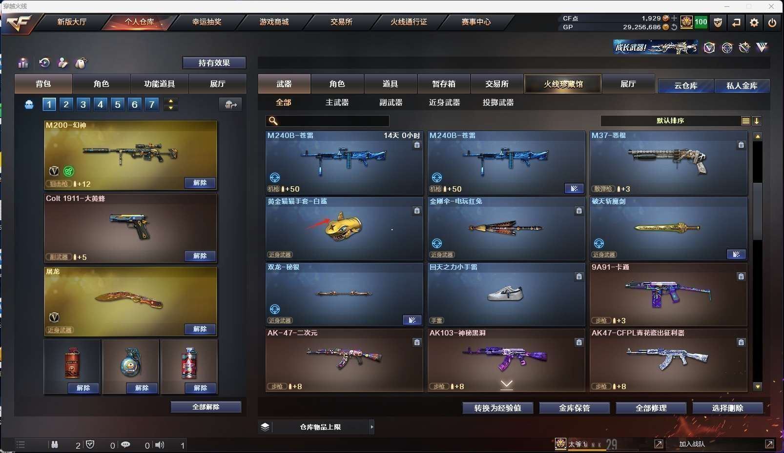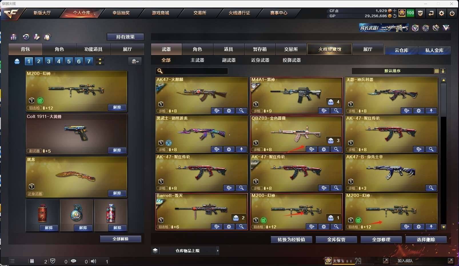 CFD533848号北方大区24v vip6【m200幻神2】【qbz03金色蔷薇】【毁灭冠军之怒皮肤】【雷神荣耀世冠ag皮肤】【火麒麟 身先士卒 无影神兵利器 黑武士锦绣游龙 暗月传说 朱雀 盘龙 黄金猫猫手套白鲨 】——【天神 天神动感闪耀】——【龙啸烈火龙威 屠龙 王者之击 屠龙动感闪耀】——【角色】【4防灵狐者职业经理】