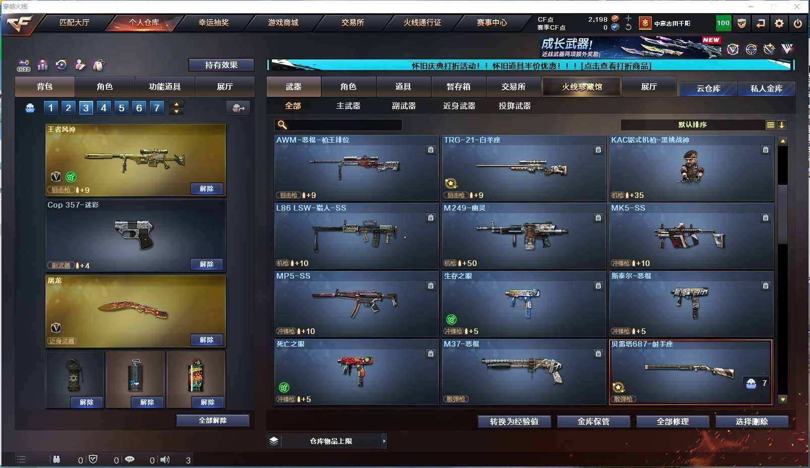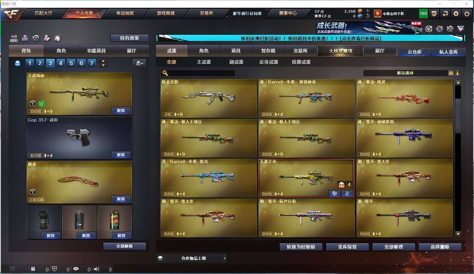 CFD533956号江苏一区 vip5 44v 【传说武器!!!】【m200幻神电流骇客皮肤王者风神】 【传说辉光】【王者白虎】 【qbz03金色蔷薇金色蔷薇音效卡】【王者之心 王者之影 王者龙啸 王者之幻 王者之魄 王者之势 王者之光】 【黑龙冠军之武皮肤】 【雷神雷神音效卡巅峰荣耀皮肤】 【火麒麟 黑骑士 无影 黑武士 天启 超新星 机械迷城 黑鲨 朱雀 源雷神iii 死神雪域霜狐 猎神 猩红传说 毁灭 芭蕾特金色蔷薇 芭蕾特暗月传说 烈龙】——【沙鹰修罗】——【屠龙 龙啸 幻灵之锋 擎天云海游龙】——【幻灵投掷武器套装】——【热门武器/小人呛】【再燃火线 炫金雷神 炫金无影 炫金毁灭 盘龙悦心 黑桃战神】——【角色】【葵 瞳 战地猎狐 王者玲珑 雪域霜狐 云海玲珑】