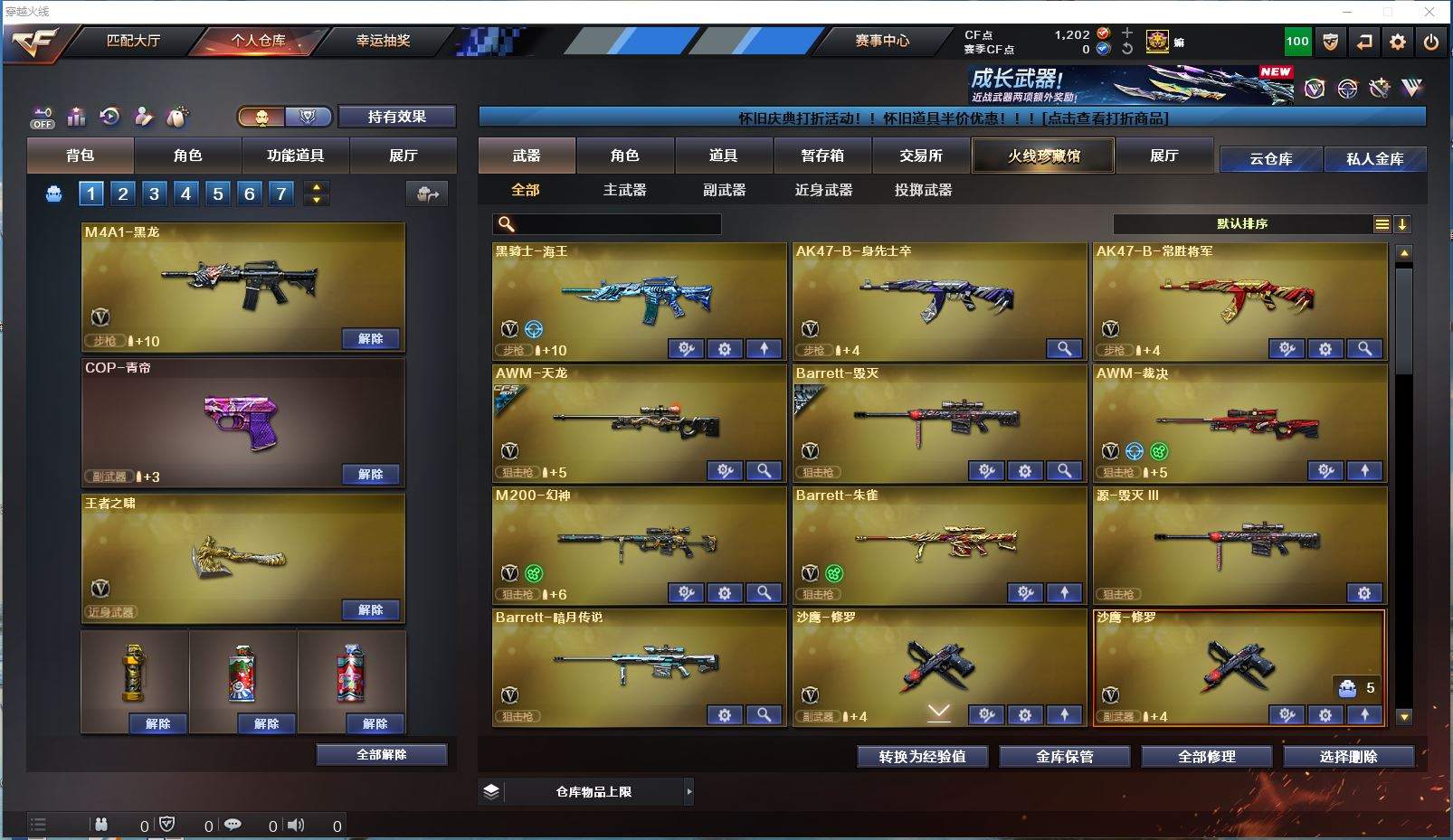 浙江二区 vip6 34V 【稀有角色!!!】【M200幻神】【王者之魄 火麒麟 黑龙 雷神 黑骑士 黑鲨 无影神兵利器 机械迷城穹宇 猩红传说 战士 黑骑士海王 身先士卒 常胜将军 天龙 毁灭 裁决 巴雷特朱雀 源毁灭III 巴雷特暗月传说】——【沙鹰修罗3 沙鹰天神2】——【屠龙 龙啸 擎天 麒麟刺 王者之锋 王者之啸 王者之击】——【热门武器/小人枪】【雷神精英刀锋 死亡之眼】——【角色】【老海豹突击队】【樱】