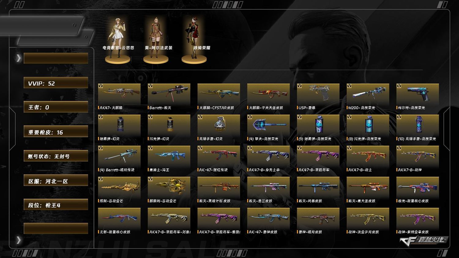 [16376311]lc7756/北部/河北一区/可排位/52v/【/lc200竞技荣光套/lc200竞技荣光/擎天竞技荣光/】【/四防角色/电竞教官云悠悠/】/柯尔特竞技荣光/usp雷暴/火麒麟/毁灭/炼狱百战金芒/麒麟刺百战金芒/金色蔷薇狼王/裁决雪莉杨/找回包赔