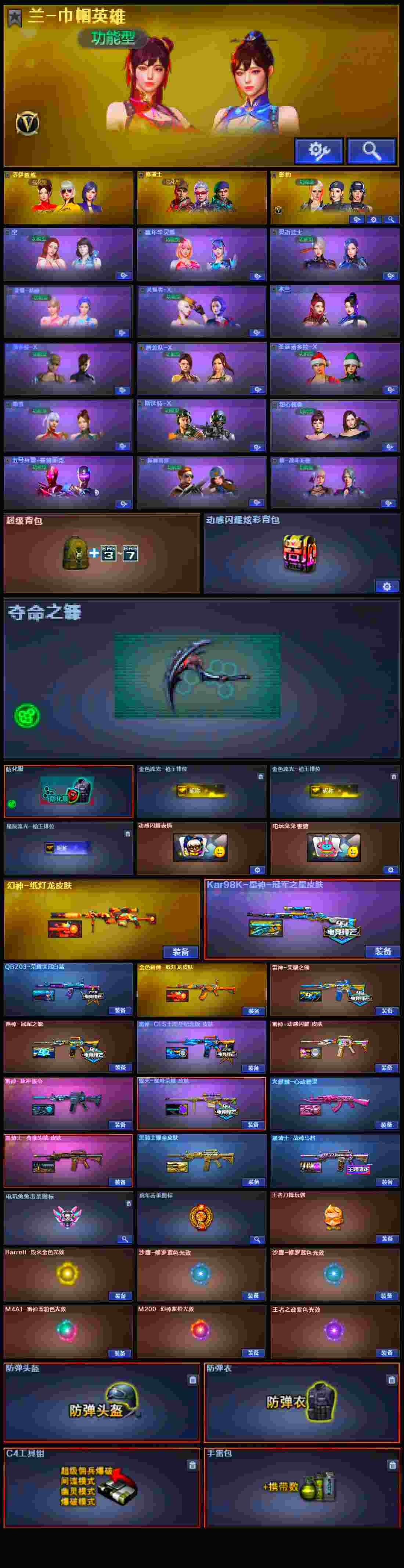 4防巾帼英雄影豹传说夜影传说破晓幻神纸灯笼星神炽天使白虎白虎之魄金色蔷薇双皮白鲨纸灯笼朱雀幻灵套神工套柯尔特荣耀世冠2USP神工天巧2COP幻灵5批雷神荣耀之魄冠军之魄CFS十周年毁灭巅峰荣耀3批黑骑士典雅耀金马超