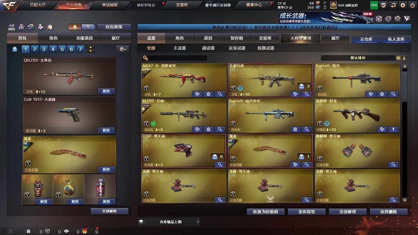 CFD535412号广东一区 vip4 55V 【M200幻神AGCFPLS17冠军皮肤】 【王者白虎】【qbz03金色蔷薇】【堕天神套装】【火麒麟火麒麟音效卡CFS2018皮肤】【雷神荣耀之魄皮肤宠儿皮肤】【黑武士锦绣游龙 9A91烈火 猩红传说 战士 身先士卒 常胜将军 毁灭 巴雷特暗月传说 烈龙】——【cop堕天神 屠龙 麒麟刺堕天神】——【龙啸堕天神 王者之啸 王者之击】——【堕天神投掷武器套装7 雷霆王者投掷武器套装2 】——【巴雷特零水下丽影】——【角色】【4防(王者葵貂蝉 王者玲珑小乔)】【迷迭香】