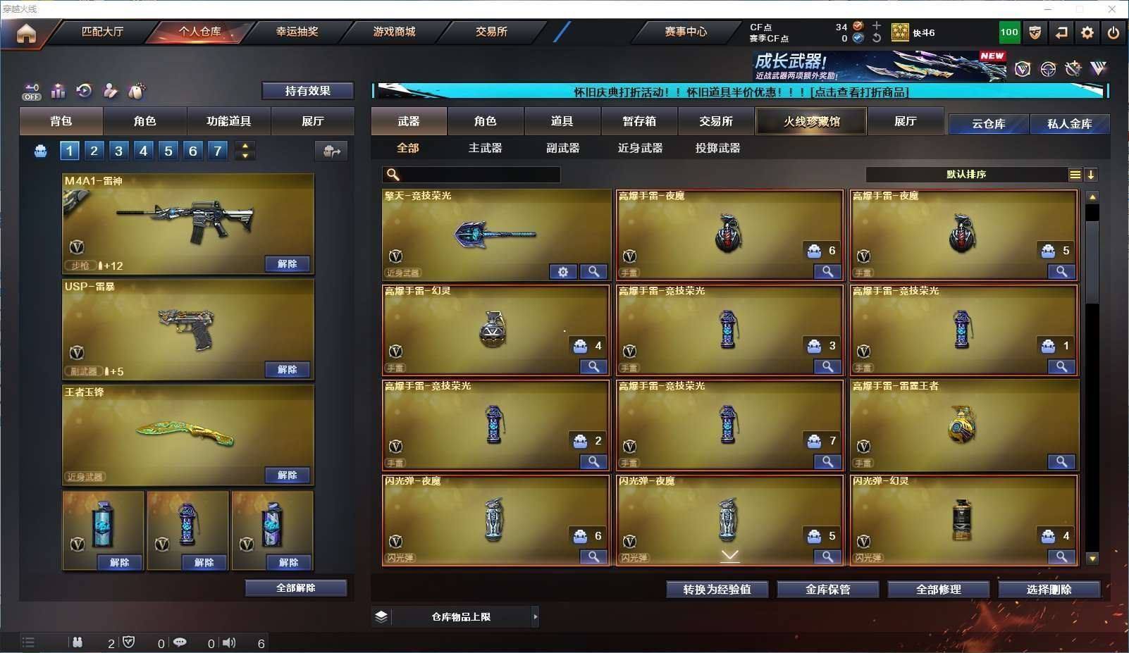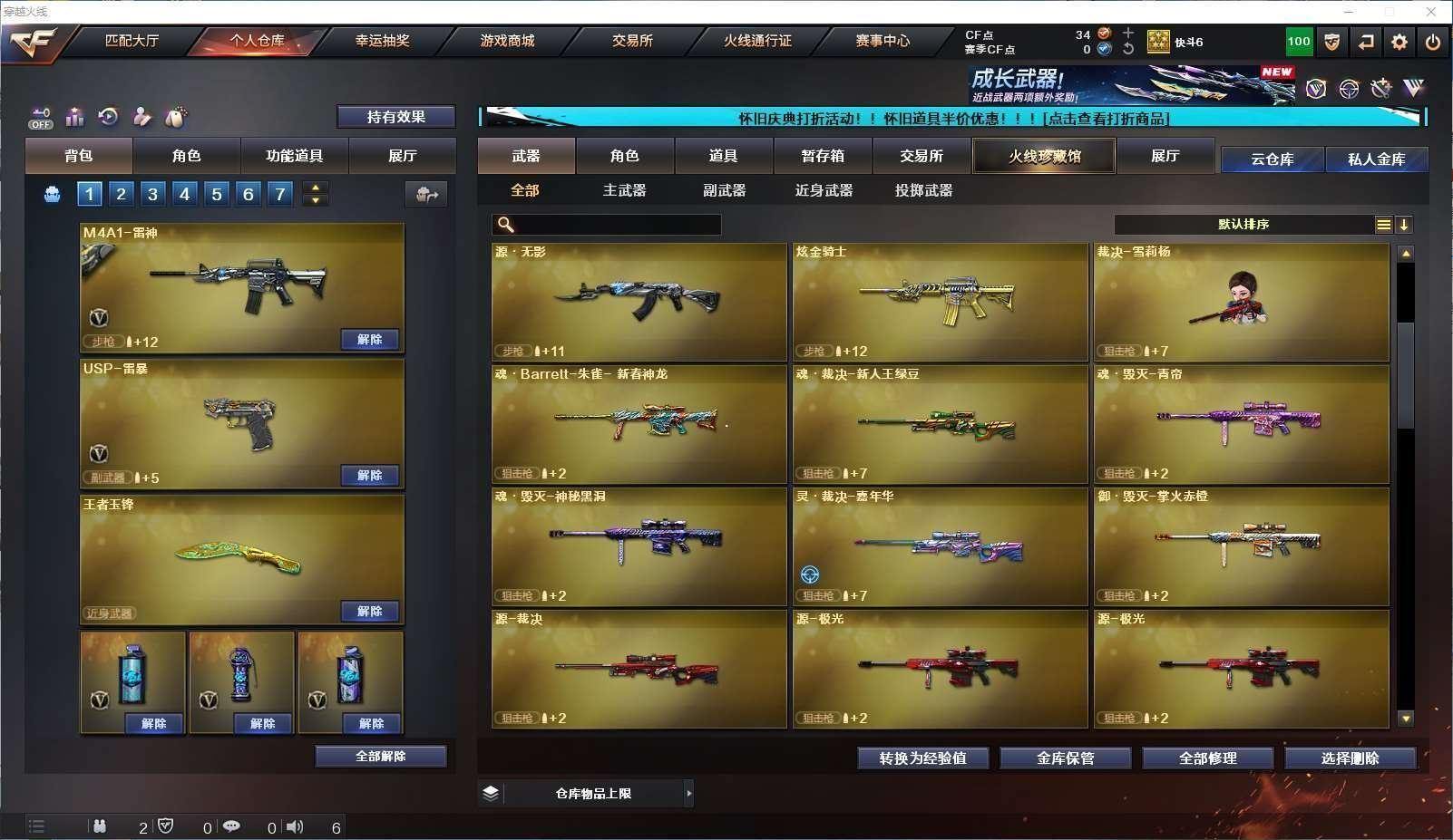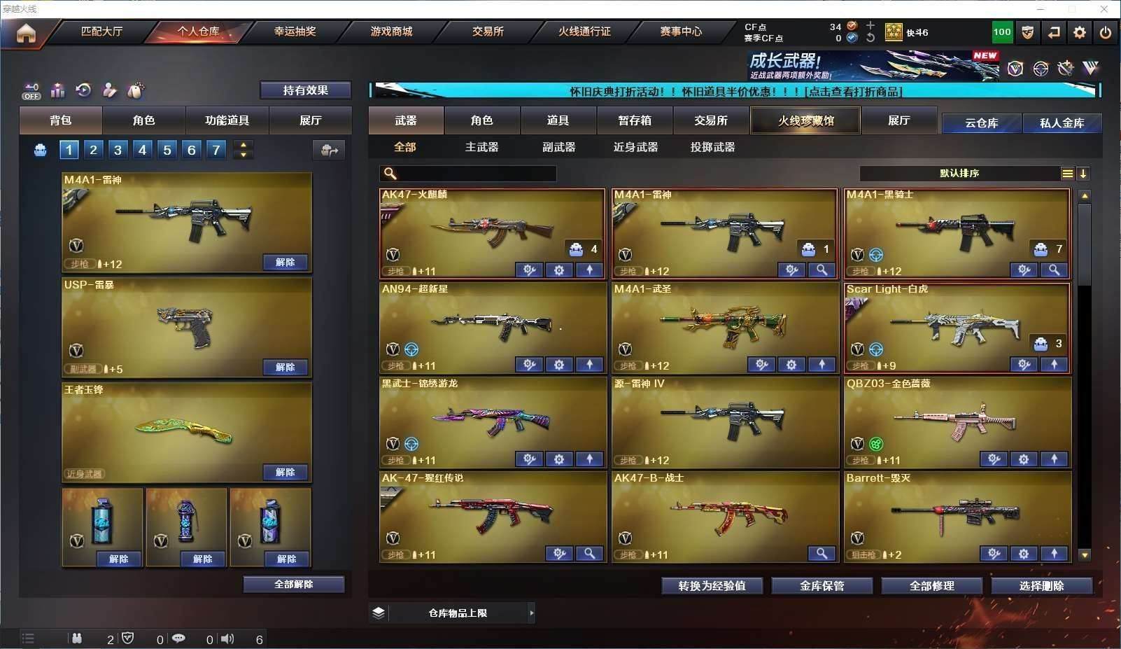 CFD535418号浙江一区 vip6 62v 【白虎三件套!!!】【m200幻神usp雷暴4防云悠悠】【竞技荣光套装】 【王者星神】 【白虎白虎音效卡暗星皮肤】 【qbz03金色蔷薇】 【4炼狱2烈龙盘龙】【王者之决 王者之怒】【黑骑士黑骑士音效卡】 【毁灭毁灭音效卡】 【火麒麟 雷神 超新星 武圣 黑武士锦绣游龙 源雷神iv 猩红传说 战士 雷霆】——【usp雷暴 沙鹰修罗 武圣 柯尔特竞技荣光】——【屠龙 麒麟刺 马来剑夜魔 幻灵之锋 擎天竞技荣光 cop358雷霆王者】——【夜魔投掷武器套装 幻灵投掷武器套装 竞技荣光投掷武器套装4 雷霆王者投掷武器套装】——【热门武器/小人呛】【炫金骑士 裁决雪莉杨】——【角色】【4防(电竞教官云悠悠 王者葵惊若翩鸿)】