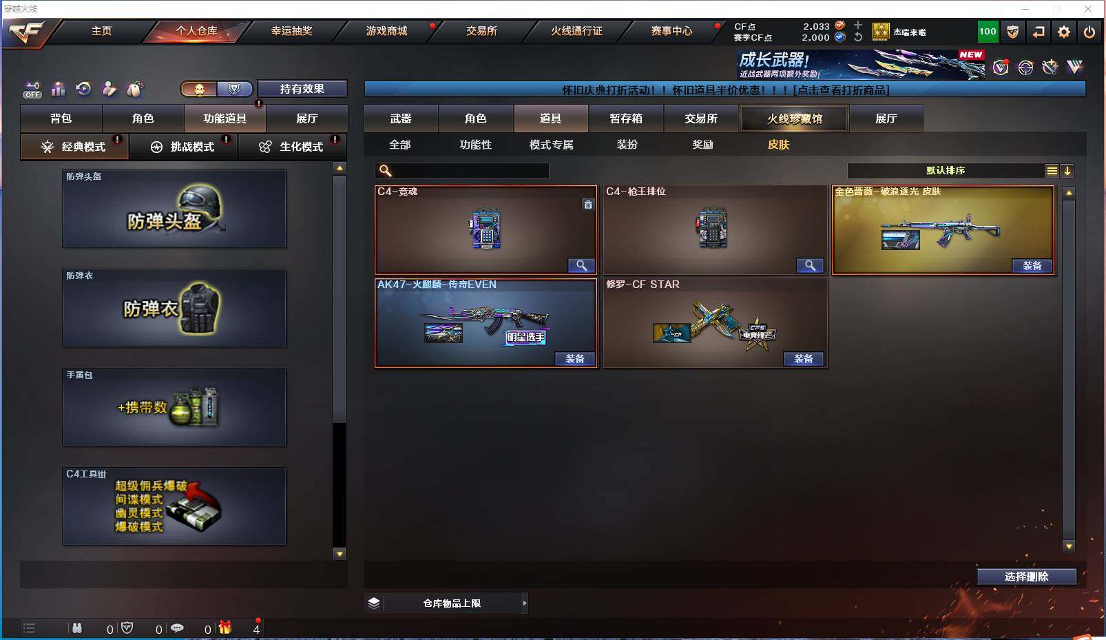 [16432497]【编号81338,可秒换绑】【高质量爆破号!竞技荣光套/炽芒蝶刃/金色蔷薇破浪逐光皮!】,湖南一区-22v-0王者武器数-0炫金武器数 【热门武器】:q03-金色蔷薇,m200-竞技荣光,炽芒蝶刃 【皮肤】:金色蔷薇-破浪逐光 皮肤,ak47-火麒麟-传奇even 【角色】:蛇隐宗,奇洋探员,风暴女,娟娟,猎狐者-追月,0号玩家,潘多拉-x,蛇姬 【人偶武器】:生化手蕾-机甲核心2,灵狐娃娃手蕾6 【英雄级武器】:ak47-火麒麟,黑武士-锦绣游龙,q03-金色蔷薇,barrett-毁灭,m200-竞技荣光,柯尔特-竞技荣光,擎天-竞技荣光,炽芒蝶刃,高爆手蕾-竞技荣光4,手蕾-热带奇洋,闪光丹-竞技荣光2,盐雾蛋-竞技荣光4,m4a1-赤狱骑士 【道具】:cfs限定背包,亚洲杯纪念炫彩背包,古蛇迷踪炫彩背包,奇洋探员-海龟背包,超级背包,救世主-黑桃战神,绿色巨人,灵魂忍者2,迷雾幽灵,夺命之镰,防化服2,星辰流光-呛王排位,巅峰赛先锋-金色流光,流光-再燃火线,呛王排位28赛季金色流光,呛王排位29赛季金色流光,蛇隐宗表情,ep战队名片,ep战队喷图,ep战队击杀图标,防弹头盔2,防弹衣2,c4工具钳2,手蕾包2 【特殊呛械】: 【稀有套装】:竞技荣光套
