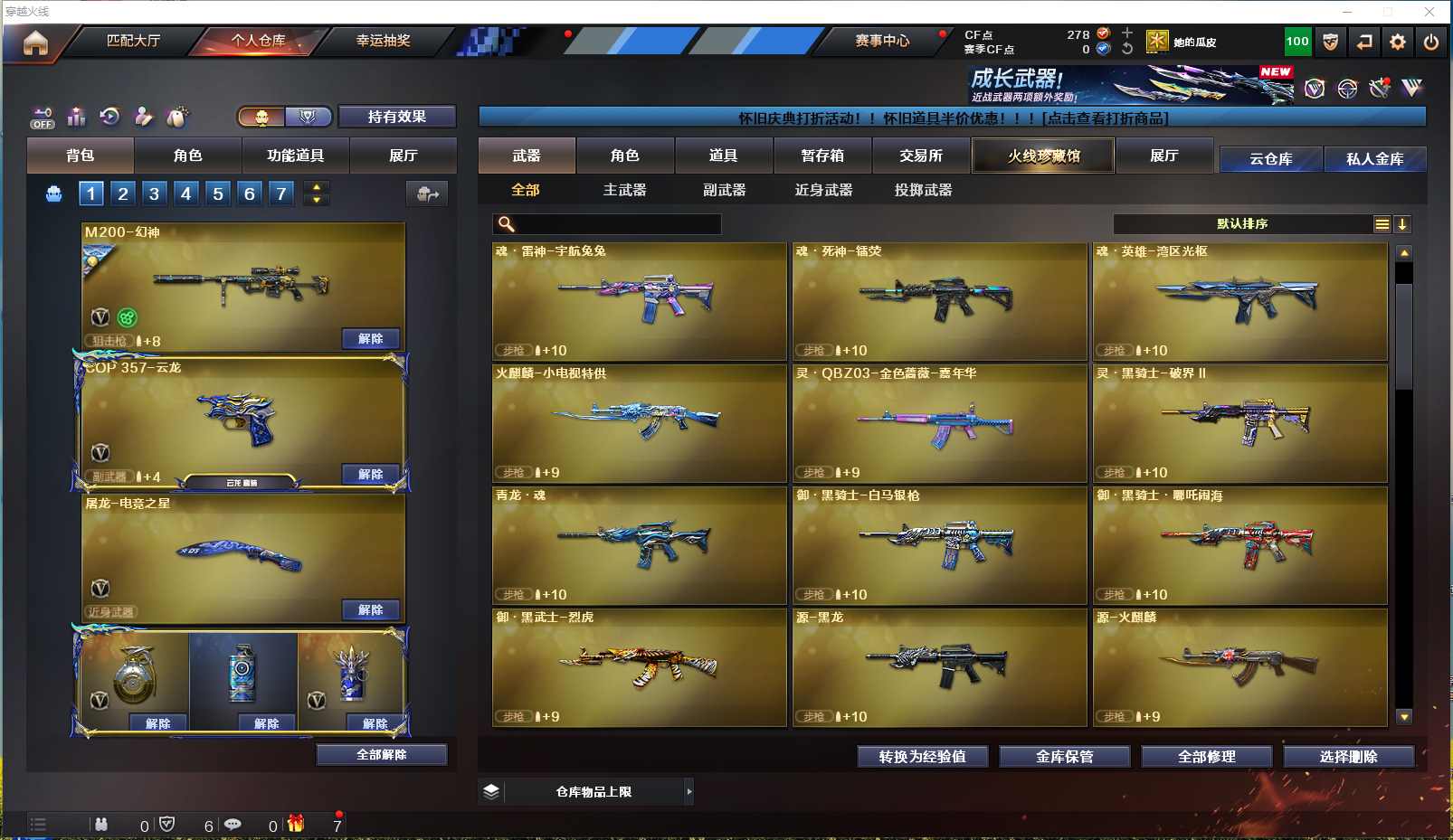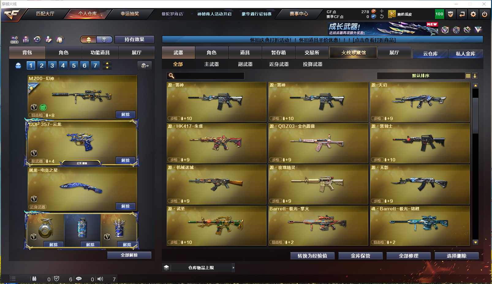 【河北一区】【可二次实名】【可排位】【新锐1】【会员等级VIP6】【CF点278】【V武器数30】【云龙套装X1套】【传说影煞】【M200-幻神】【幻神-荣耀世冠EP 皮肤】【M200-幻神音效卡】【QBZ03-云龙】【COP 357-云龙】【魂·炼狱-玩具枪】【传说影煞】【奇洋探员】【蛇隐宗】【修道士】【云海玲珑】【M4A1-雷神】【雷神-暗月】【火麒麟-CFSTAR】【Barrett-毁灭】【毁灭-暗月】