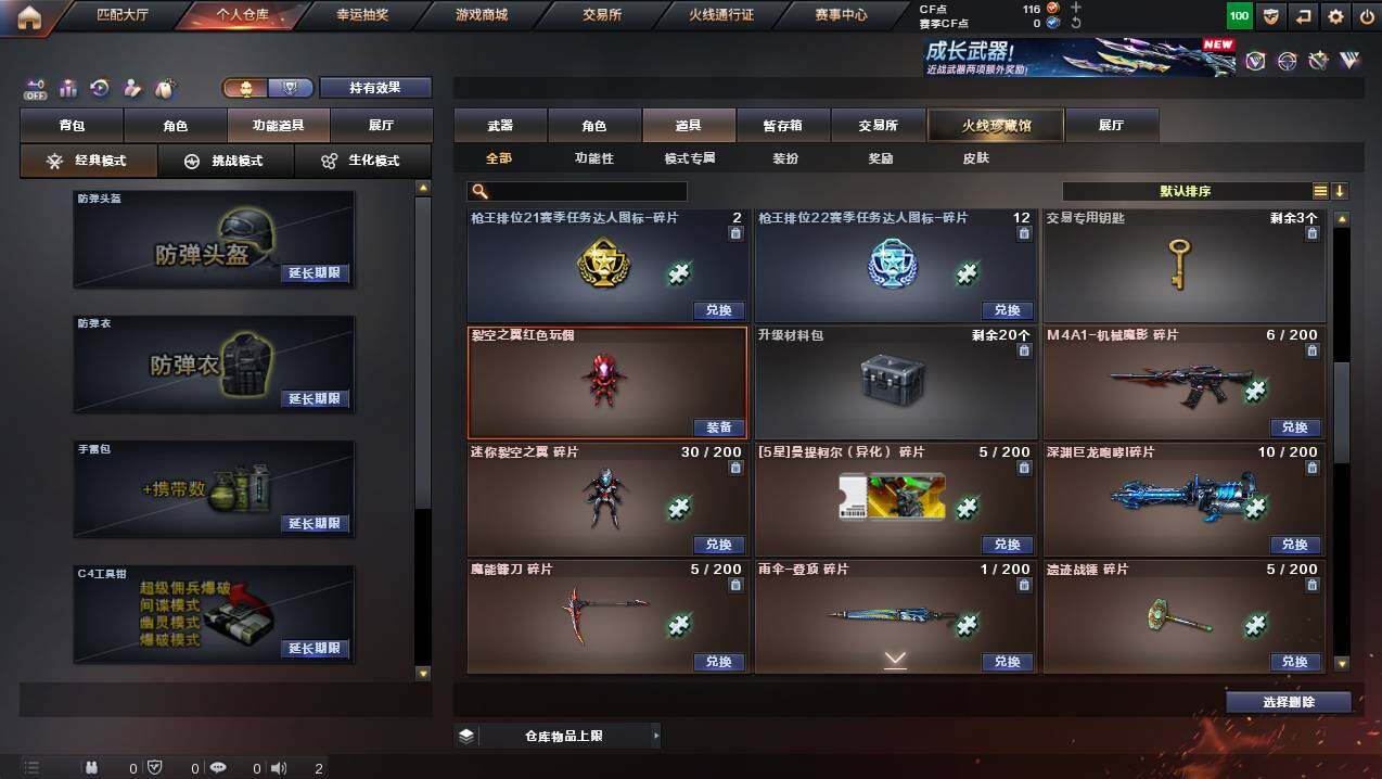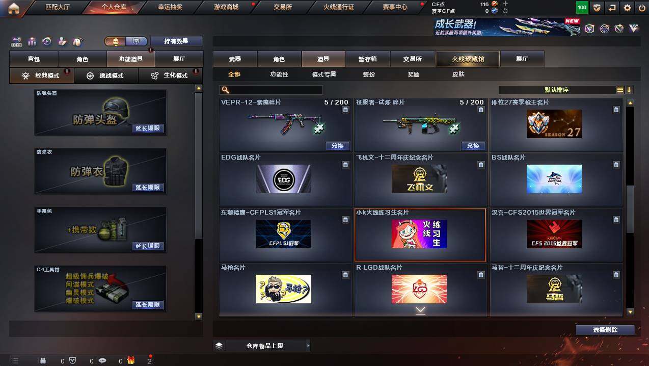四川一区-8v-0王者武器数-1炫金武器数 【热门武器】:m200-竞技荣光,usp-雷暴【稀有套装】:竞技荣光套 【王者炫金武器】:炫金雷神 【皮肤】:火麒麟-雷神 【角色】:麻雀,青霞仙子,新娜塔莎,樱-战斗天使 【人偶武器】:深渊终结者手蕾 【英雄级武器】:无影-神兵利器,m200-竞技荣光,usp-雷暴,柯尔特-竞技荣光,擎天-竞技荣光,高爆手蕾-竞技荣光,闪光丹-竞技荣光,盐雾蛋-竞