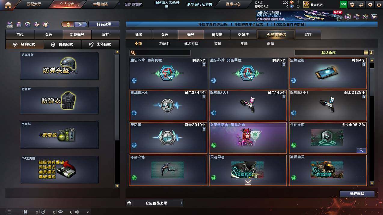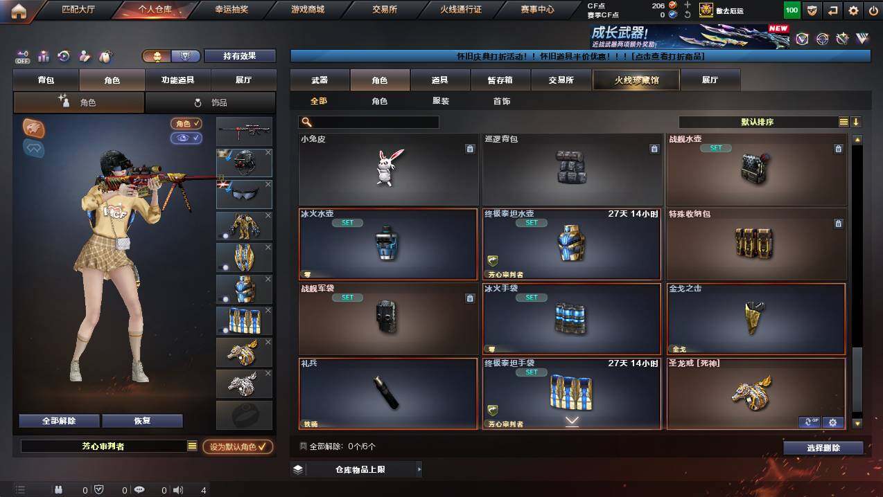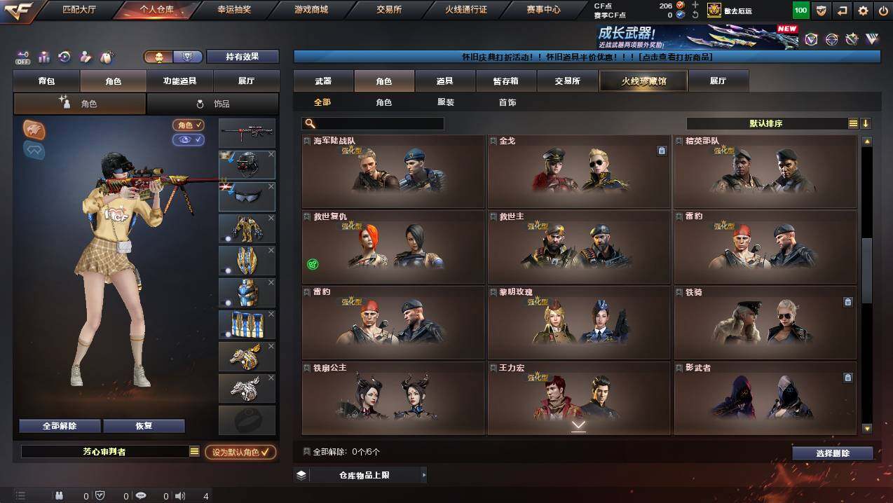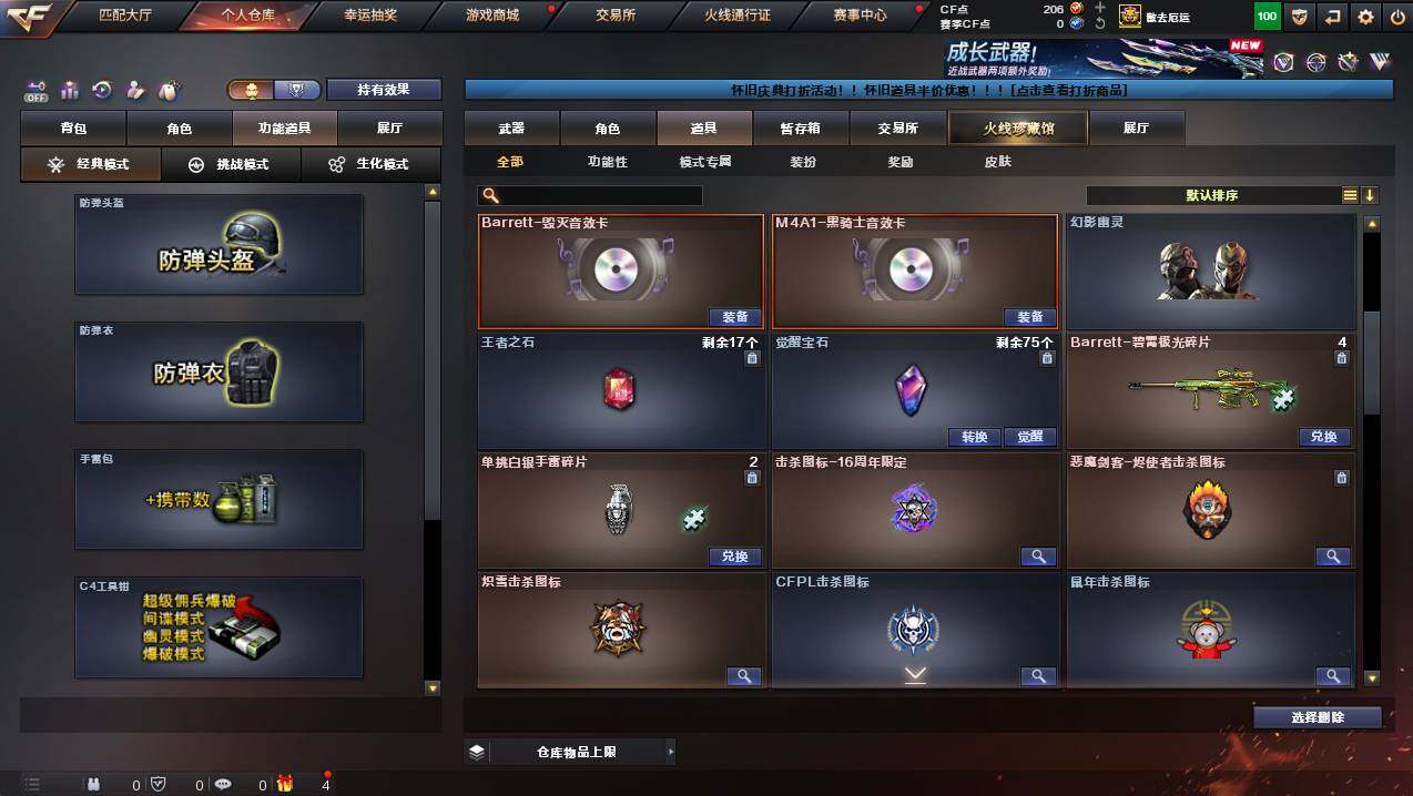 安徽一区-100v-9王者武器数-4炫金武器数 【热门武器】:q03-金色蔷薇,m200-幻神,kar98k-星神,m4a1-黑骑士,汤姆逊-烈龙,加特林-炼狱,usp-雷暴2,沙鹰-修罗7 【王者炫金武器】:王者之光,王者之锋2,炫金黑龙,炫金武士,炫金毁灭,炫金天龙 【音效卡】:m4a1-黑骑士音效卡,barrett-毁灭音效卡 【皮肤】:雷神-暗月,雷神-能量核心,火麒麟-冠军