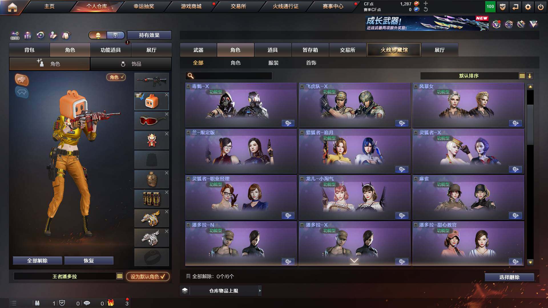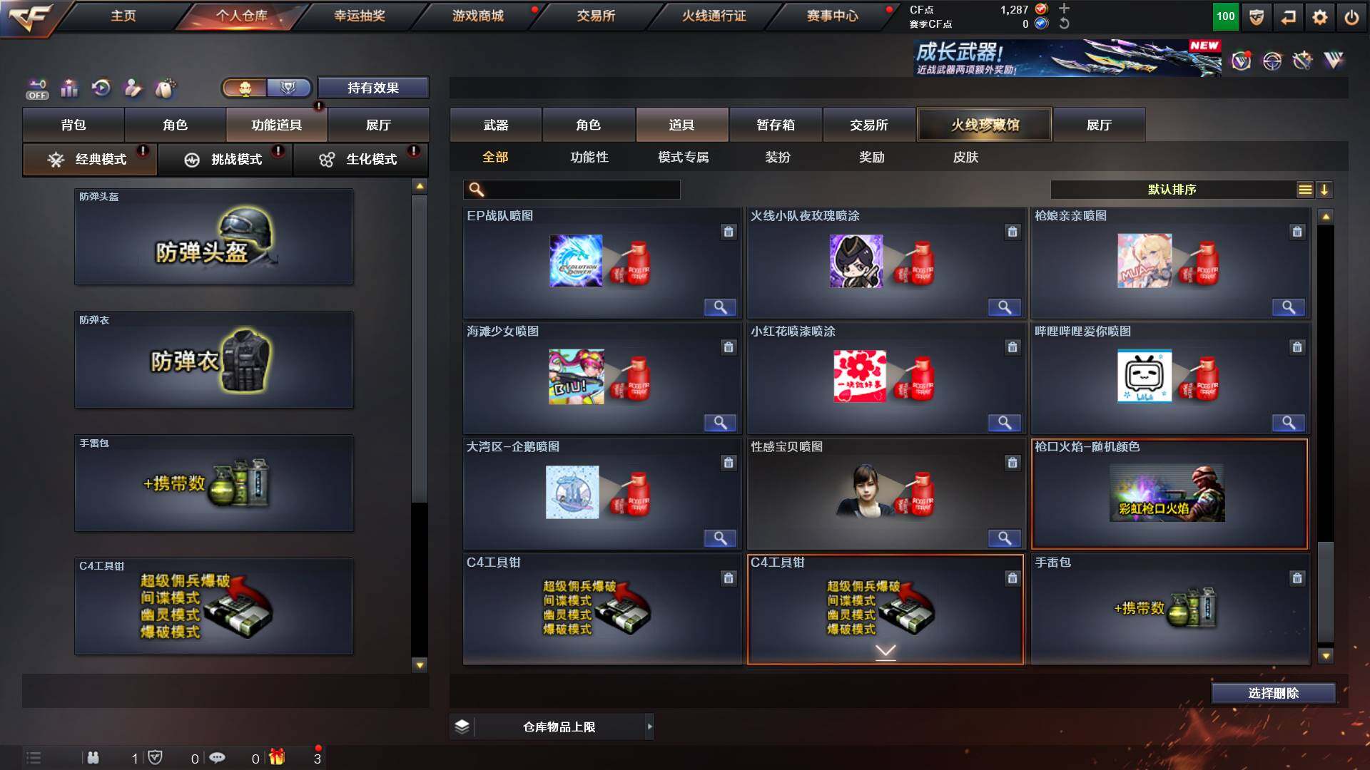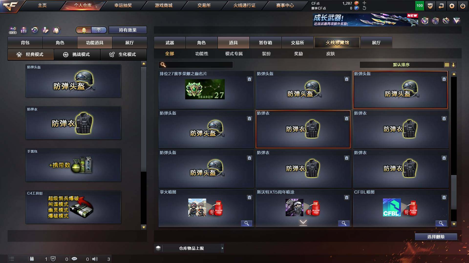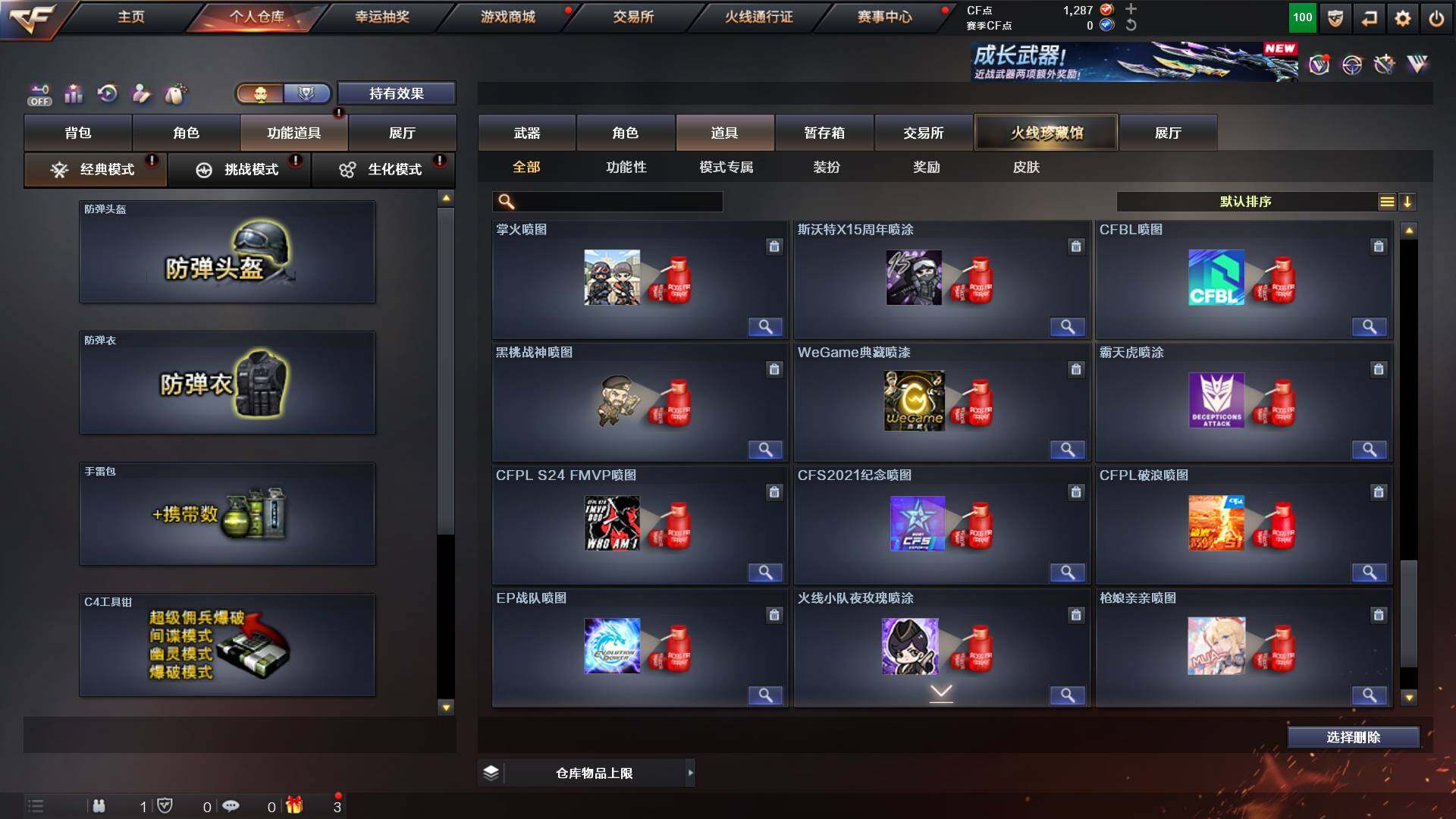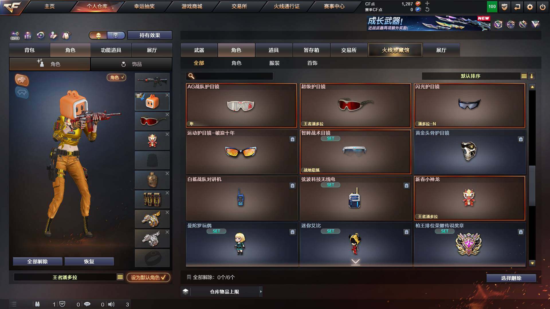 重庆一区-44v-13王者武器数-0炫金武器数 【热门武器】:q03-金色蔷薇,m200-幻神,m4a1-黑骑士,金色蔷薇-空,毁灭-孙三炮,usp-雷暴,cop 357-幻灵,沙鹰-修罗2,knife-冠军之刃,金刚伞 【音效卡】:barrett-毁灭音效卡,70kg语音包,barrett-碧霄极光音效卡,炼狱-百战金芒-庆典舞曲音效卡,死神-雪域霜狐-怀旧音效卡 【皮肤】:幻神-宠儿