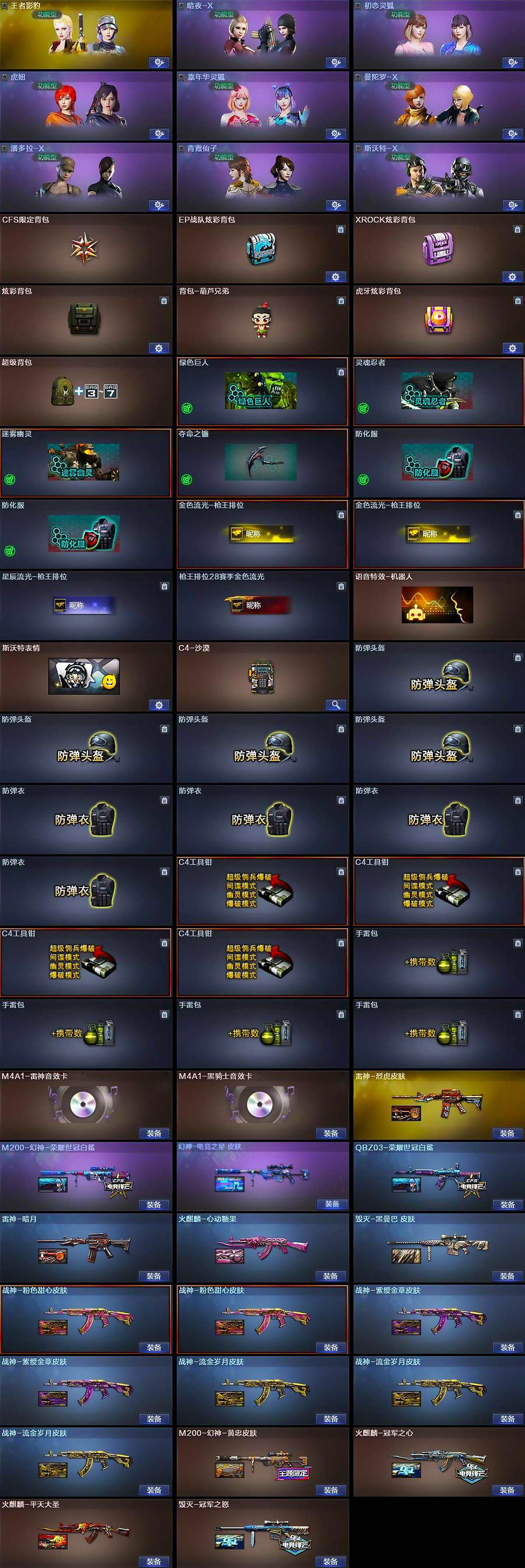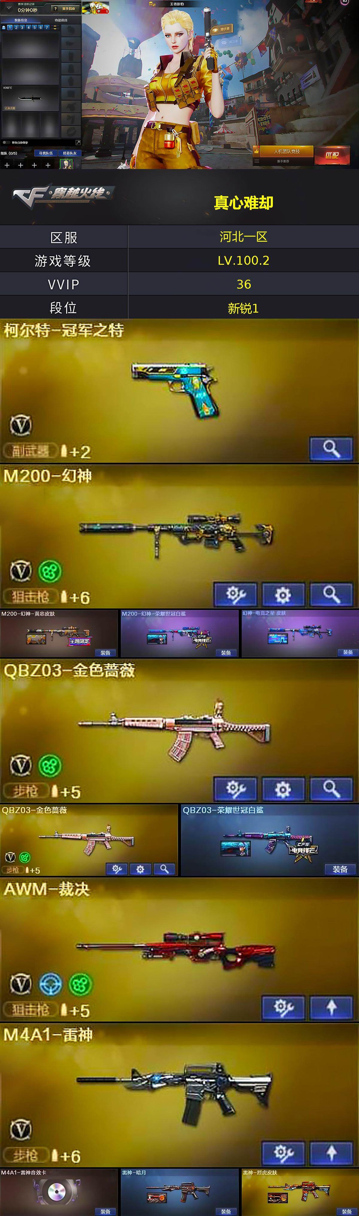 [16473261]河北一区-42v-8王者武器数-0炫金武器数 【热门武器】:q03-金色蔷薇2,m200-幻神,死亡之眼,柯尔特-冠军之特,m4a1-黑骑士,加特林-炼狱,沙鹰-修罗 【王者炫金武器】:王者之心,王者之魄高爆手蕾 【音效卡】:m4a1-雷神音效卡,m4a1-黑骑士音效卡 【皮肤】:m200-幻神-黄忠皮肤,m200-幻神-荣耀世冠白鲨,幻神-电竞之星 皮肤,q03-荣耀世冠白鲨,雷神-暗月,雷神-烈虎皮肤,火麒麟-冠军之心,火麒麟-平天大圣,火麒麟-心动糖果,毁灭-冠军之怒,毁灭-黑曼巴 皮肤,毁灭-英雄计划 皮肤,战神-粉色甜心皮肤2,战神-紫绶金章皮肤2,战神-流金岁月皮肤3,ak47-b-常胜将军-刘备,ak47-b-常胜将军-孙权 【角色】:王者影豹,暗夜-x,初恋灵狐,虎妞,嘉年华灵狐,曼陀罗-x,潘多拉-x,青霞仙子,斯沃特-x 【人偶武器】:awm-灵狐-15周年嘉年华,生化手蕾-机甲核心,闪光丹-小乔,闪光丹-貂蝉,高爆手蕾-大乔,灵狐娃娃手蕾 【暴走生化】:死亡之眼 【挑战大师】:神圣爆裂者iii,冰龙粉碎者-白马银呛2 【英雄级武器】:ak47-火麒麟2,m4a1-黑龙,m4a1-雷神,m4a1-黑骑士,无影-神兵利器,q03-金色蔷薇2,ak-47-猩红传说4,ak47-b-战神,黑骑士-海王,ak47-b-常胜将军,barrett-毁灭,awm-裁决,m200-幻神,加特林-炼狱,沙鹰-修罗,柯尔特-冠军之特,屠龙,王者之锋-觉醒版,王者之啸-觉醒版,王者之击-觉醒版2,雷霆王者之锋-觉醒版,高爆手蕾-幻灵,高爆手蕾-神工天巧,闪光丹-幻灵,闪光丹-神工天巧,闪光丹-雷霆王者-觉醒版,盐雾蛋-幻灵,盐雾蛋-神工天巧 【道具】:cfs限定背包,ep战队炫彩背包,xrock炫彩背包,炫彩背包,背包-葫芦兄弟,虎牙炫彩背包,超级背包,绿色巨人,灵魂忍者,迷雾幽灵,夺命之镰,防化服2,金色流光-呛王排位2,星辰流光-呛王排位,呛王排位28赛季金色流光,语音特效-机器人,斯沃特表情,c4-沙漠,防弹头盔4,防弹衣4,c4工具钳4,手蕾包4 【特殊呛械】:1黑骑士,1炼狱