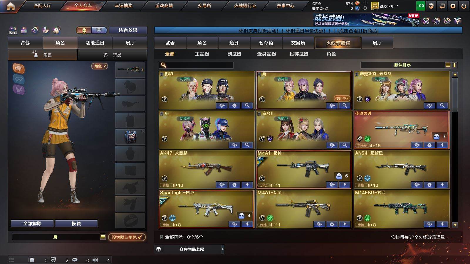 CFD538241号北京四区 62V 【幻神七皮三件套!!!】 【星神三件套!!!】【传说武器!!!】【M200幻神宠儿皮肤星火小队签名臻藏版皮肤荣耀白鲨2023皮肤CFPLS17冠军皮肤N9皮肤冠军之幻皮肤电流骇客皮肤柯尔特荣耀世冠白鲨2023炽芒蝶刃4防云悠悠】【98k星神星神音效卡巅峰荣耀皮肤】【传说灵眸】【白虎冠军之虎皮肤】【qbz03金色蔷薇冠军之薇皮肤传奇宠儿皮肤王者芳薇】【g36c幻影】【幻灵套装】【雷神荣耀之魄皮肤传奇n9皮肤宠儿皮肤CFPLS18冠军皮肤】【毁灭CFPLS15冠军皮肤】【火麒麟 超新星 玄武 神兵利器 黑武士锦绣游龙 金色蔷薇古蛇迷踪 黑骑士海王 裁决 炼狱 AA12雷霆】——【cop357幻灵 柯尔特荣耀世冠白鲨2023 修罗古蛇迷踪】——【炽芒蝶刃 麒麟刺 幻灵之锋】——【幻灵投掷武器套装10】——【朱雀蛇隐宗 雷神小红 AWM灵狐15周年嘉年华】——【角色】【4防(云悠悠 隼 岚兮儿 职业经理)】【鹰 影豹】